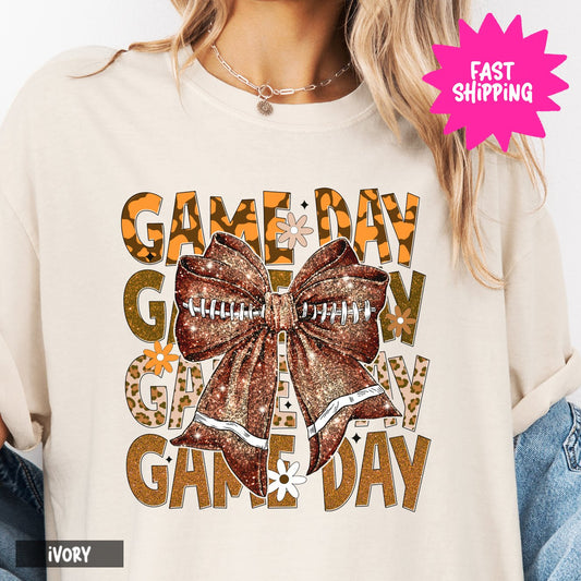 Game Day Comfort Colors T-Shirt, Football Bow Graphic Tee, Game Day Shirt, Leopard Print Football Shirt