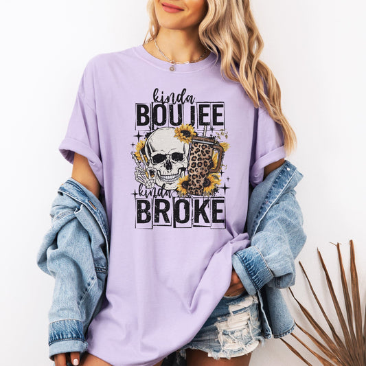 Kinda Boujee Skull Comfort Colors T-Shirt With Sunflowers And Leopard Print Drink For Trendy Style