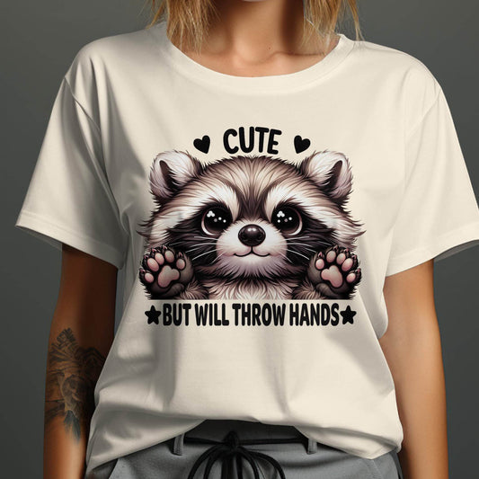 Cute Raccoon T-Shirt, Animal Lover Gift, Funny Graphic Tee, Adorable Wildlife Humor T-Shirt, Cute but Will Throw Hands Tee