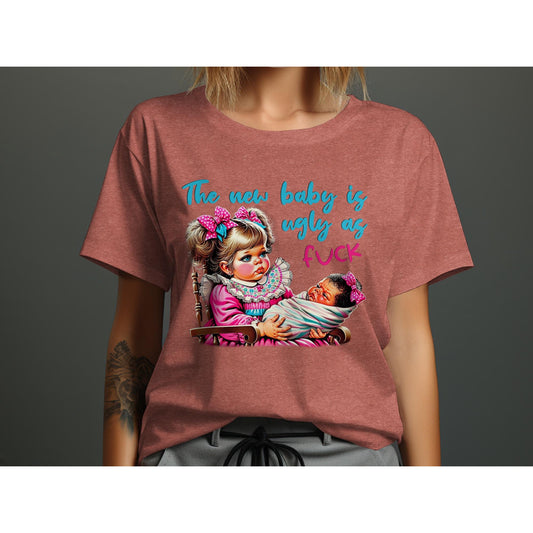 The New Baby Is Ugly As Fuck T-Shirt, Funny Sibling Humor Tee, Newborn Comedy Shirt, Baby Shower Gag Gift, Humorous Newborn Outfit