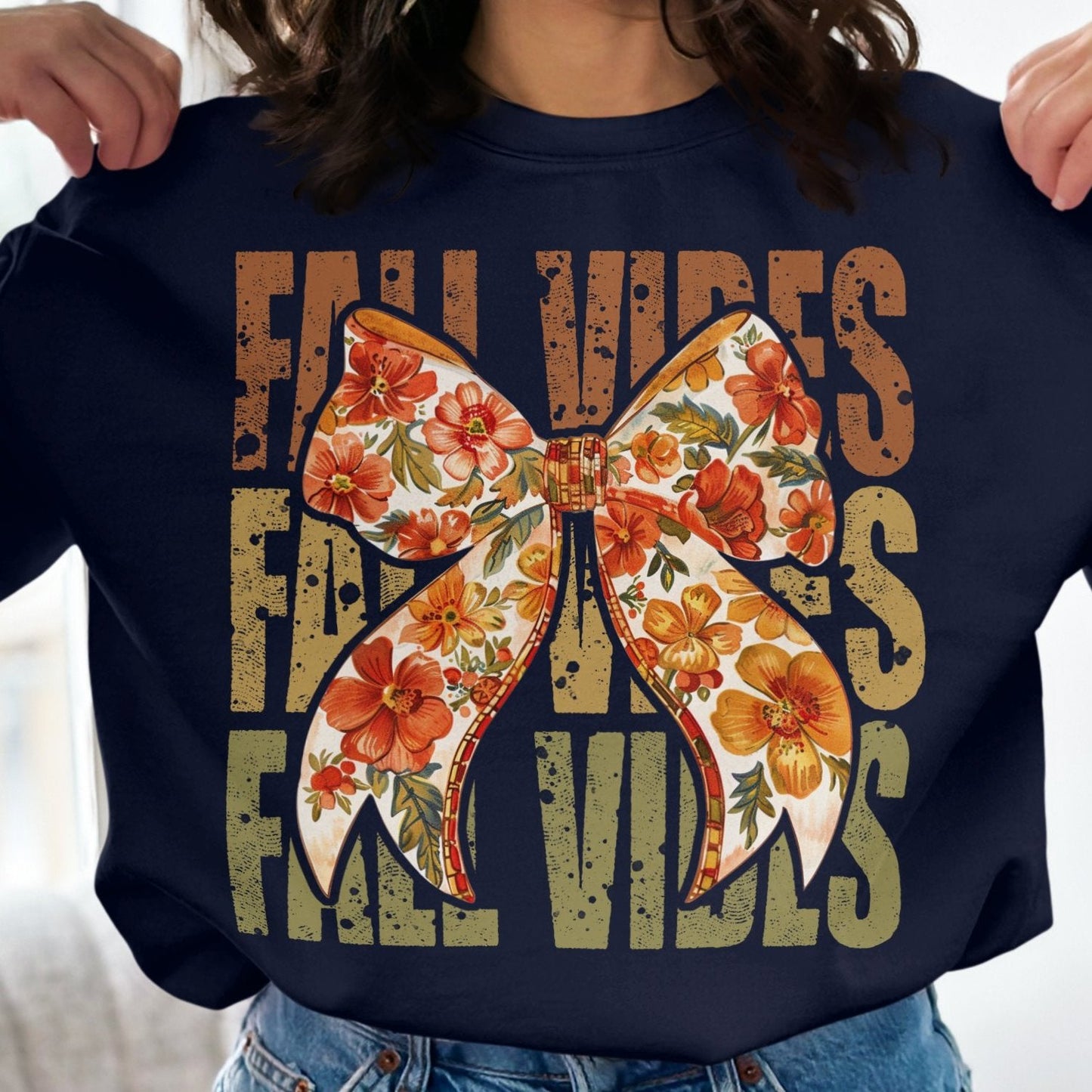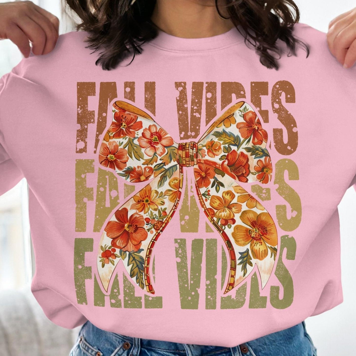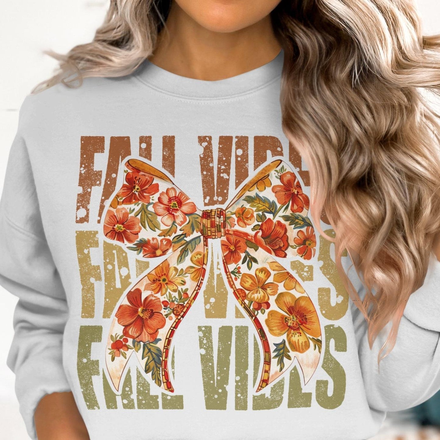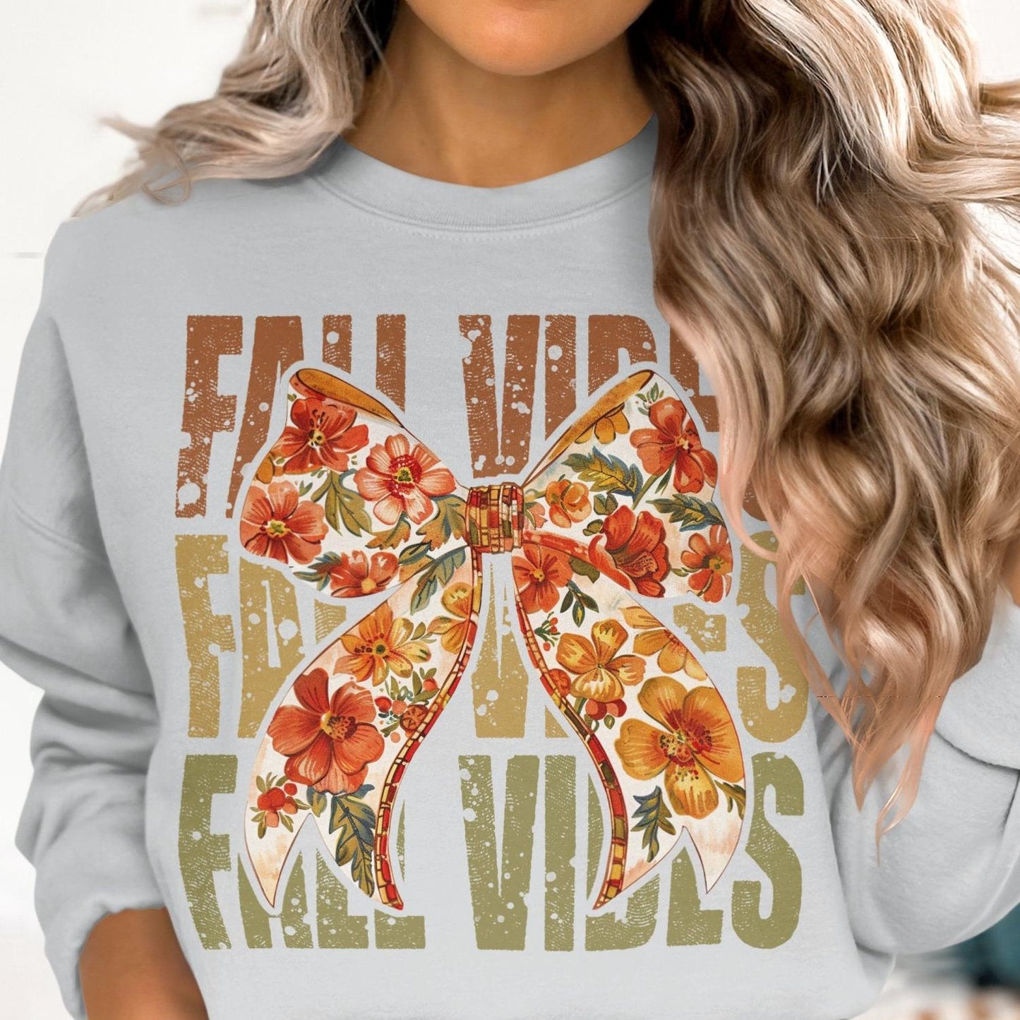 Fall Vibes Floral Bow Graphic Women's Sweatshirt