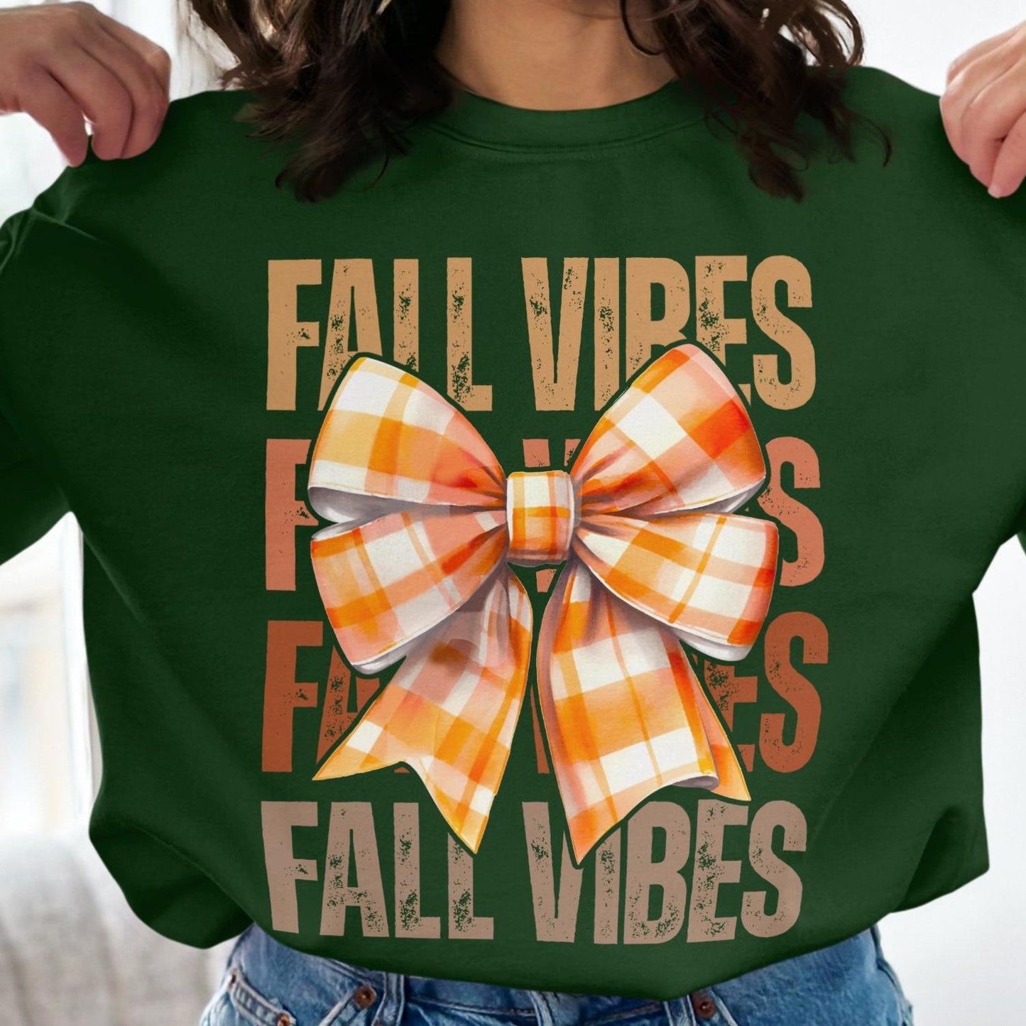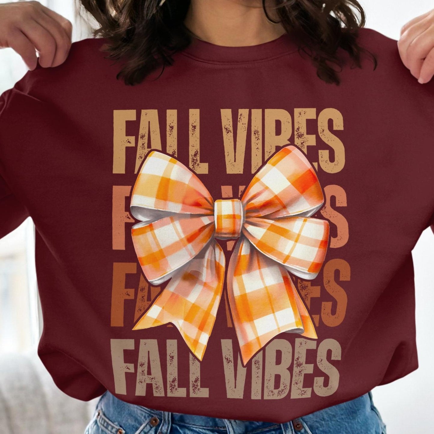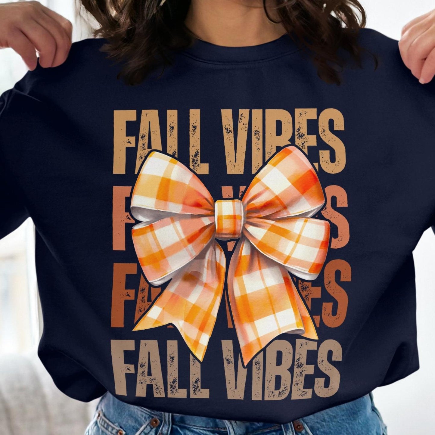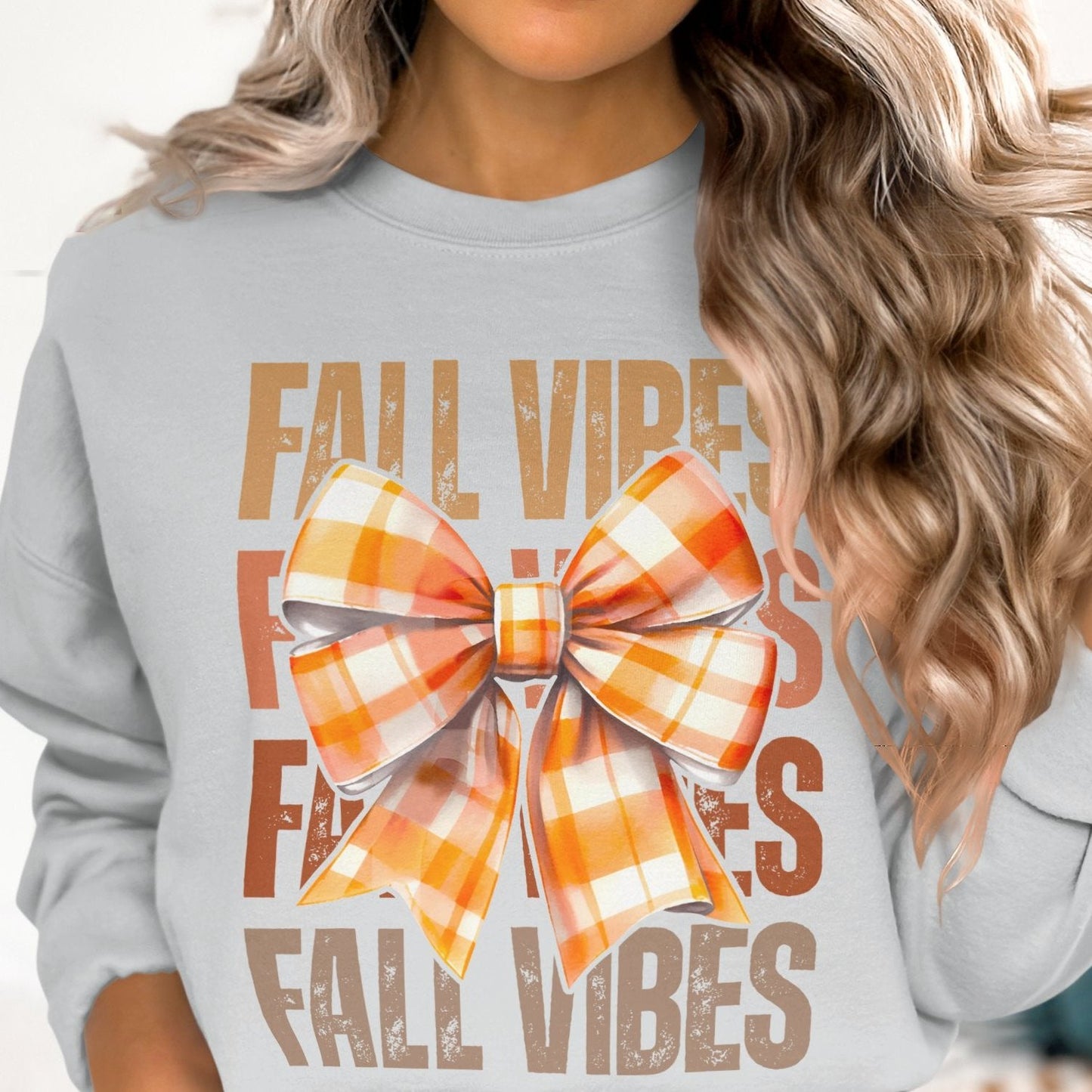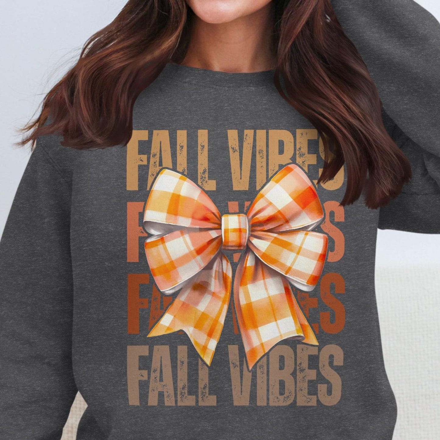 Fall Vibes Plaid Bow Graphic Women's Casual Sweatshirt