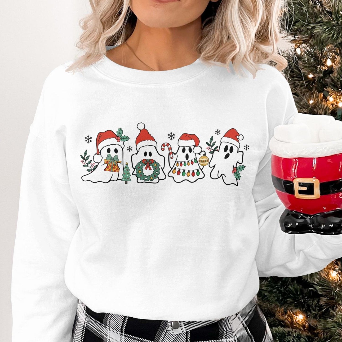 Festive Holiday Ghosts with Decorations Sweatshirts