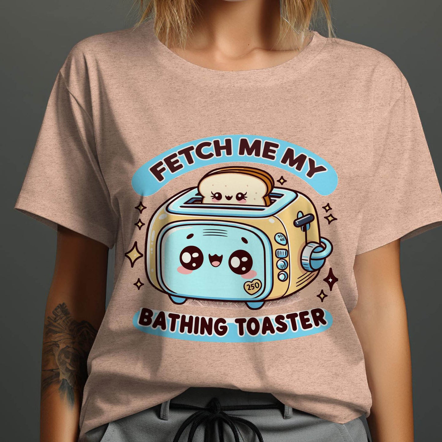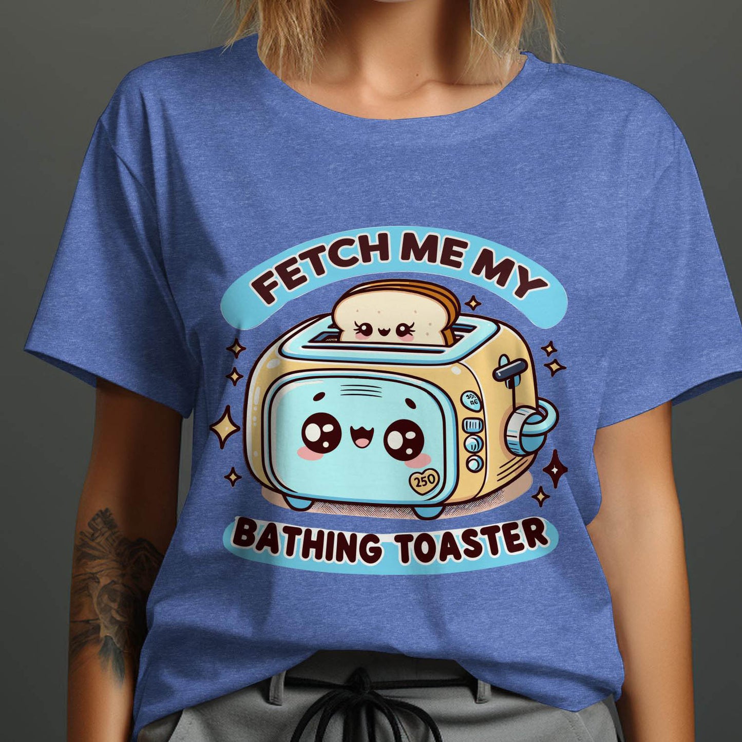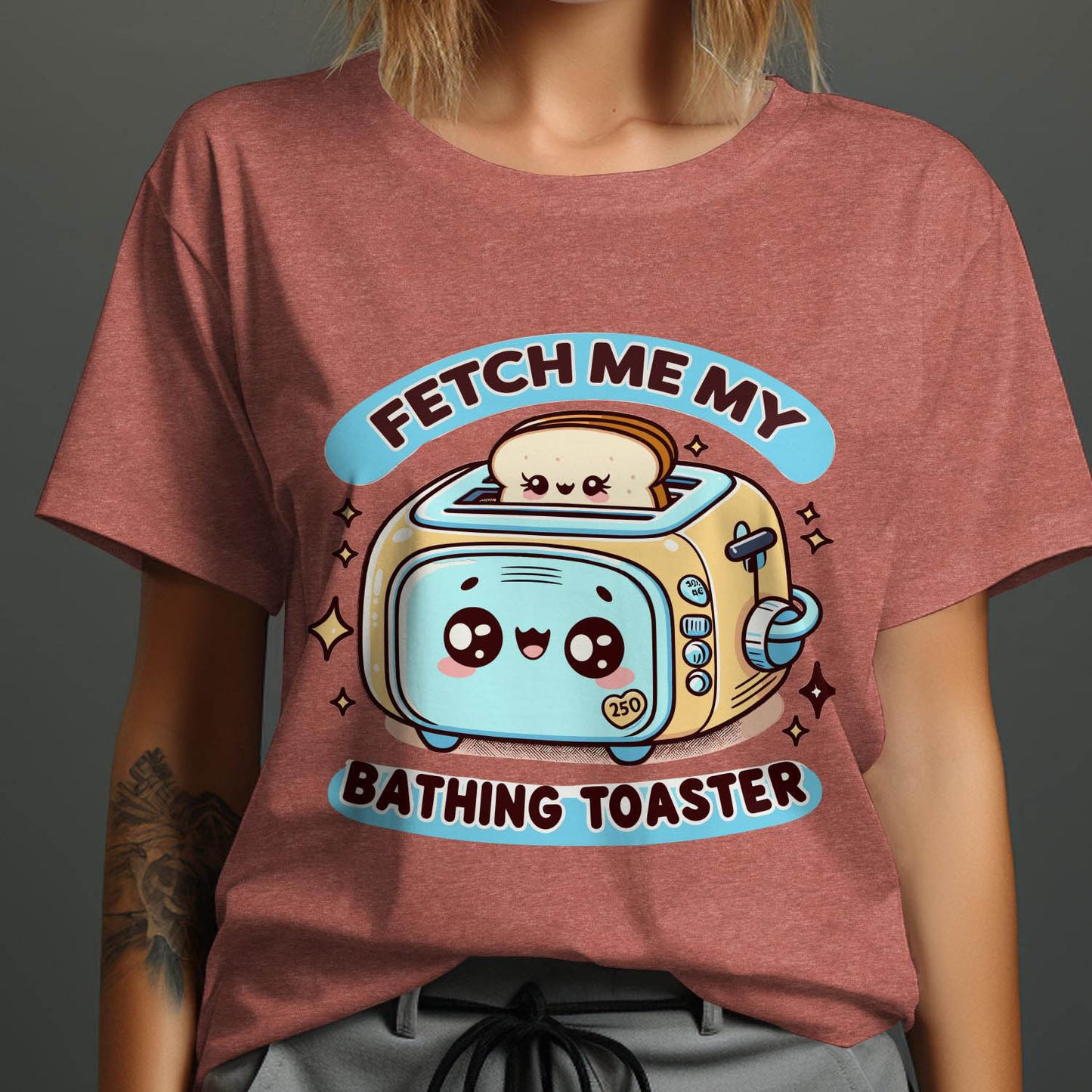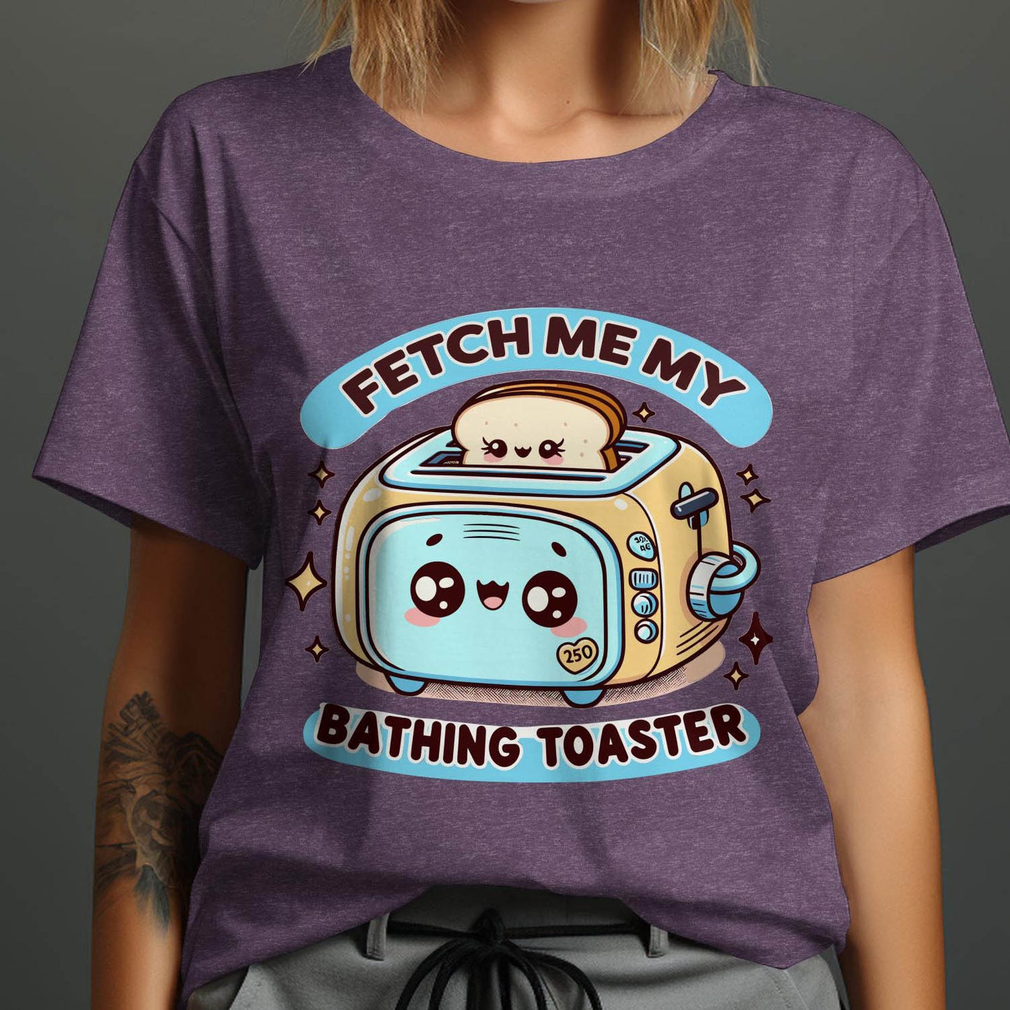 Embrace your quirky side with the 'Fetch Me My Bathing Toaster' T-Shirt. This tee features an adorable retro-style toaster with a playful expression that is sure to bring a smile to your face. Perfect for breakfast lovers and anyone with a fun sense of humor, it makes a great addition to your casual wardrobe. Ideal as a unique gift for friends and family who enjoy a good laugh over their morning toast. Wear it to spread joy and spark conversations wherever you go.