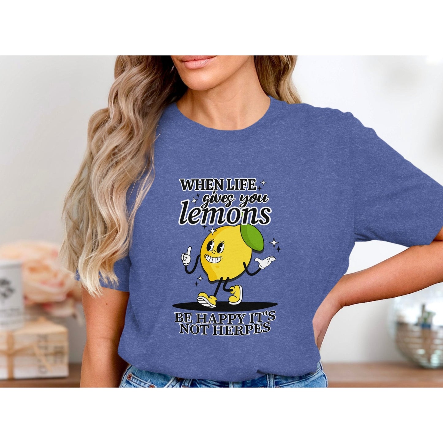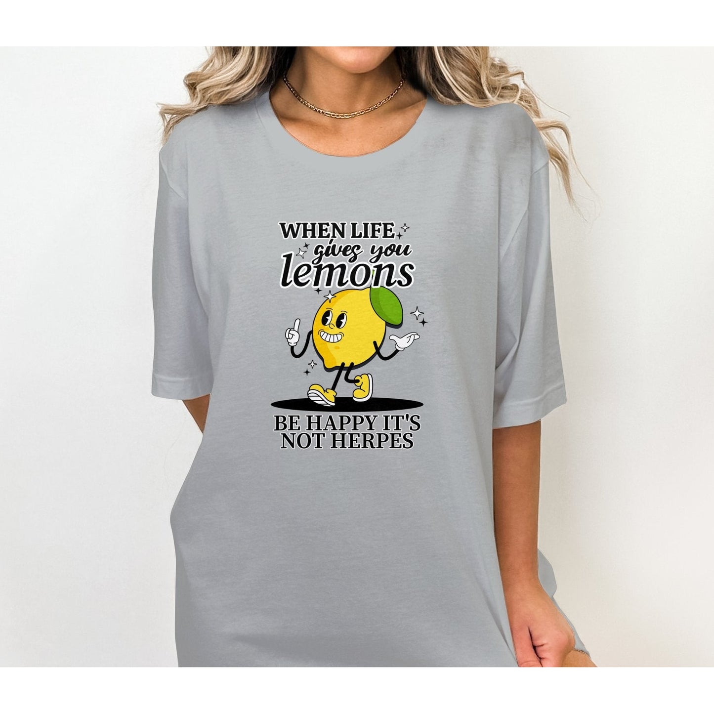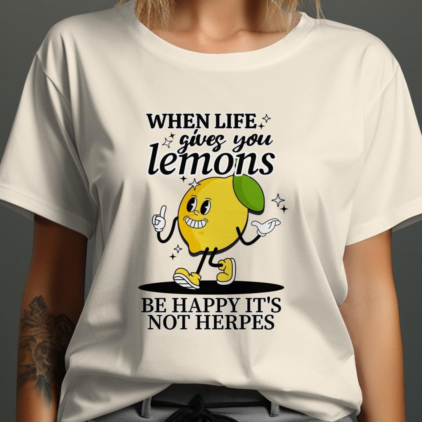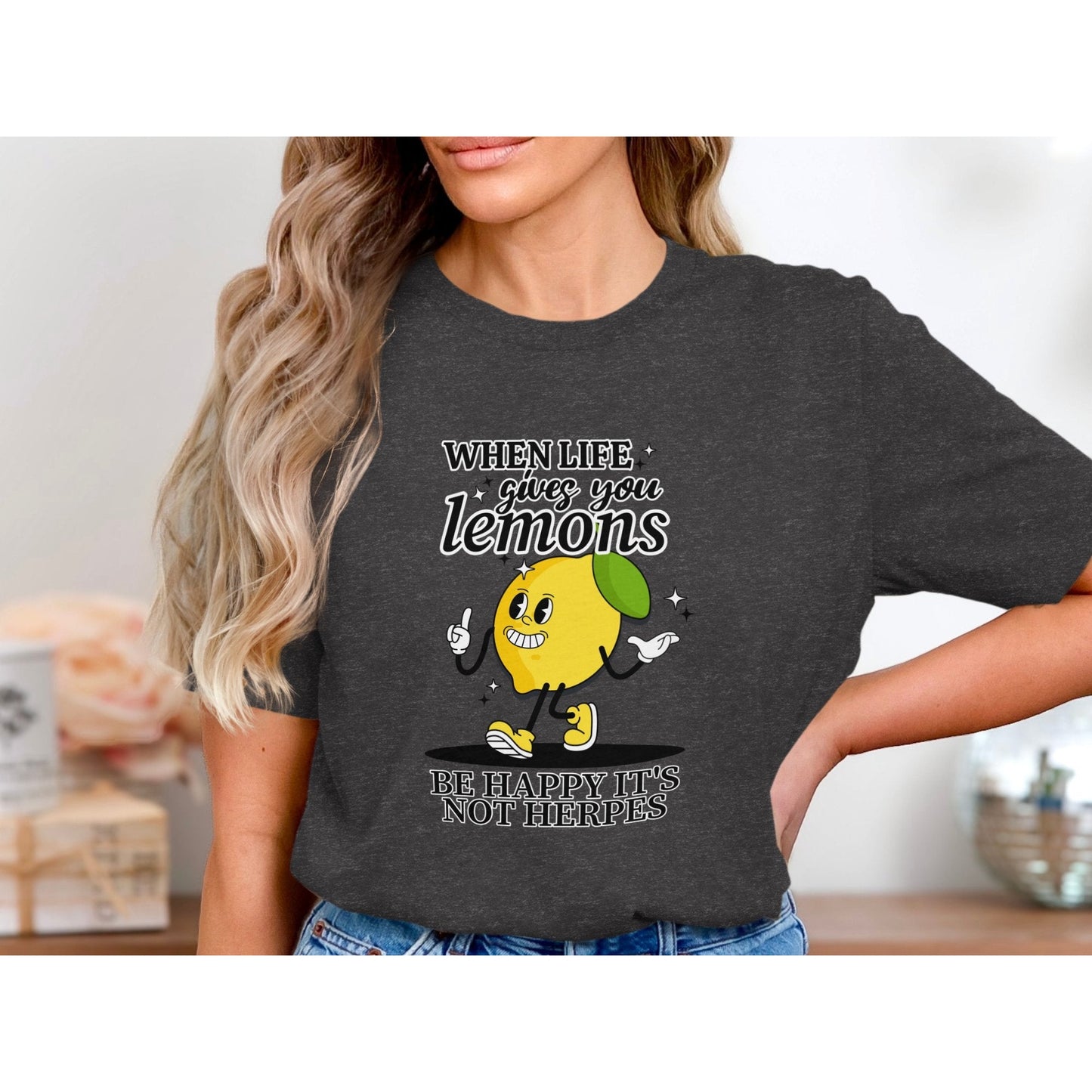 Funny Lemon T-Shirt, When Life Gives You Lemons, Be Happy It's Not Herpes Tee, Quirky Graphic Shirt, Humor T-Shirt for Adults