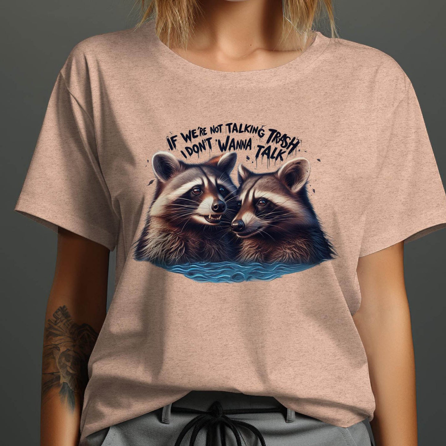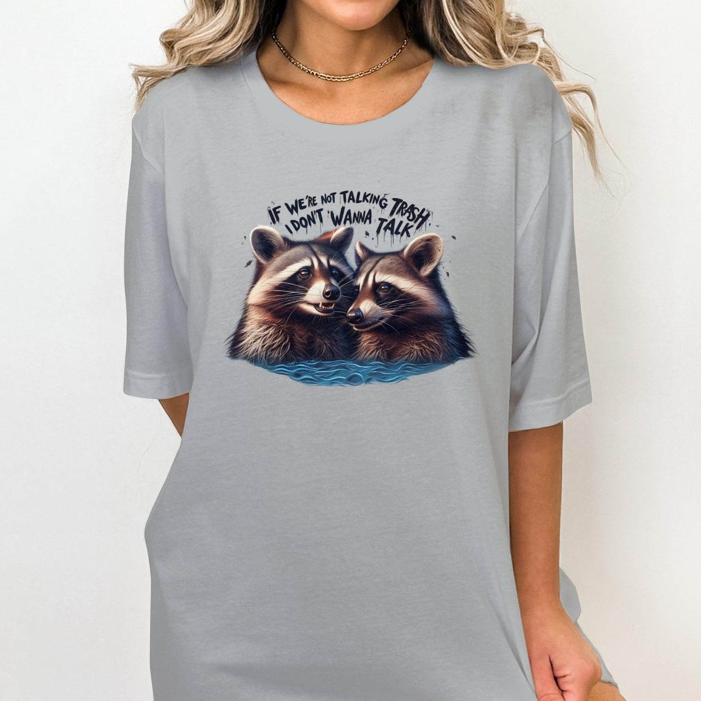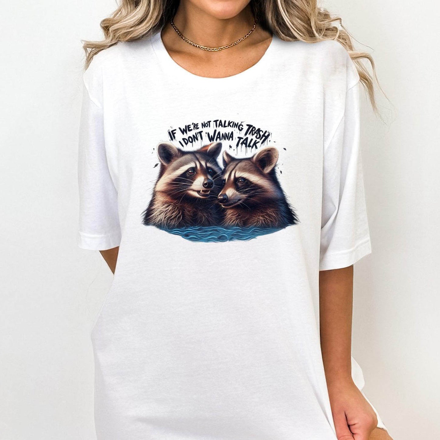 Embrace your love for nature and humor with this Funny Raccoon T-Shirt. Featuring two raccoons with the phrase "If We're Not Talking Trash, I Don't Wanna Talk," this shirt adds a playful touch to your wardrobe. Perfect for animal lovers and those who enjoy a good laugh, this T-Shirt combines cute graphics with witty text for a stand-out casual wear option. Whether you're out in nature or just want a fun tee to wear, this Raccoon shirt is a great addition to your collection.