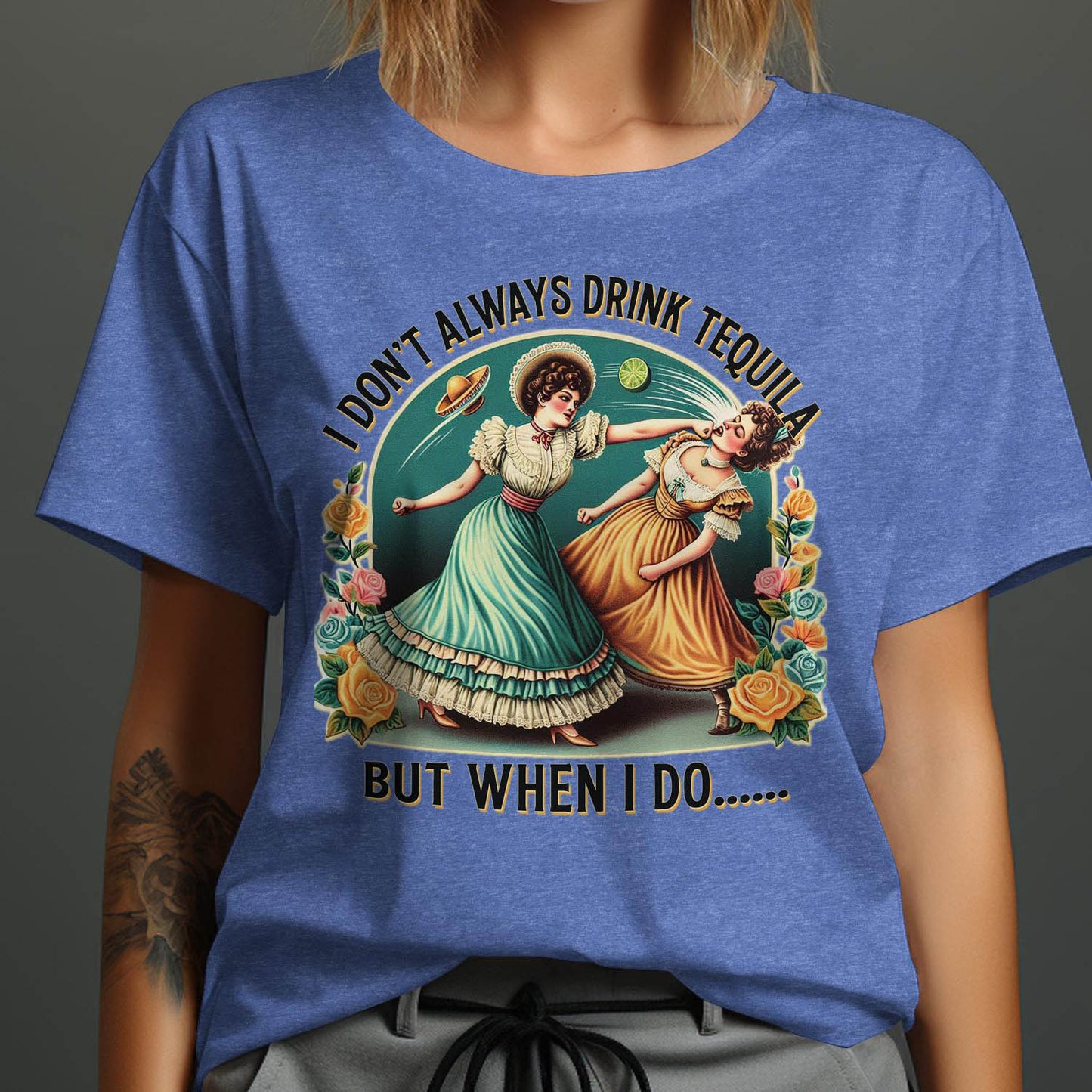 Funny Vintage Design T-Shirt, Tequila Drinking Humor T-Shirt, Retro Style T-Shirt, I Don't Always Drink Tequila T-Shirt