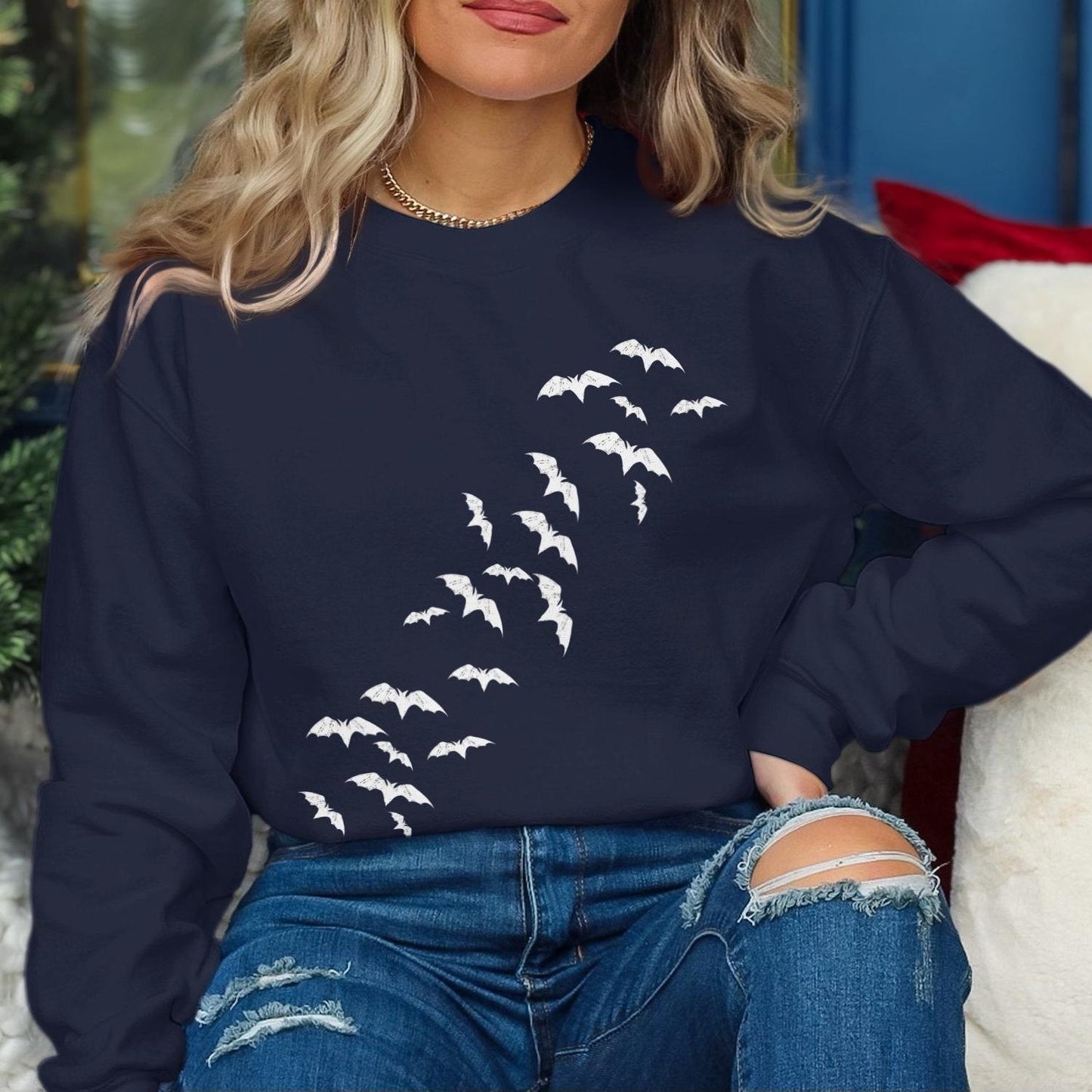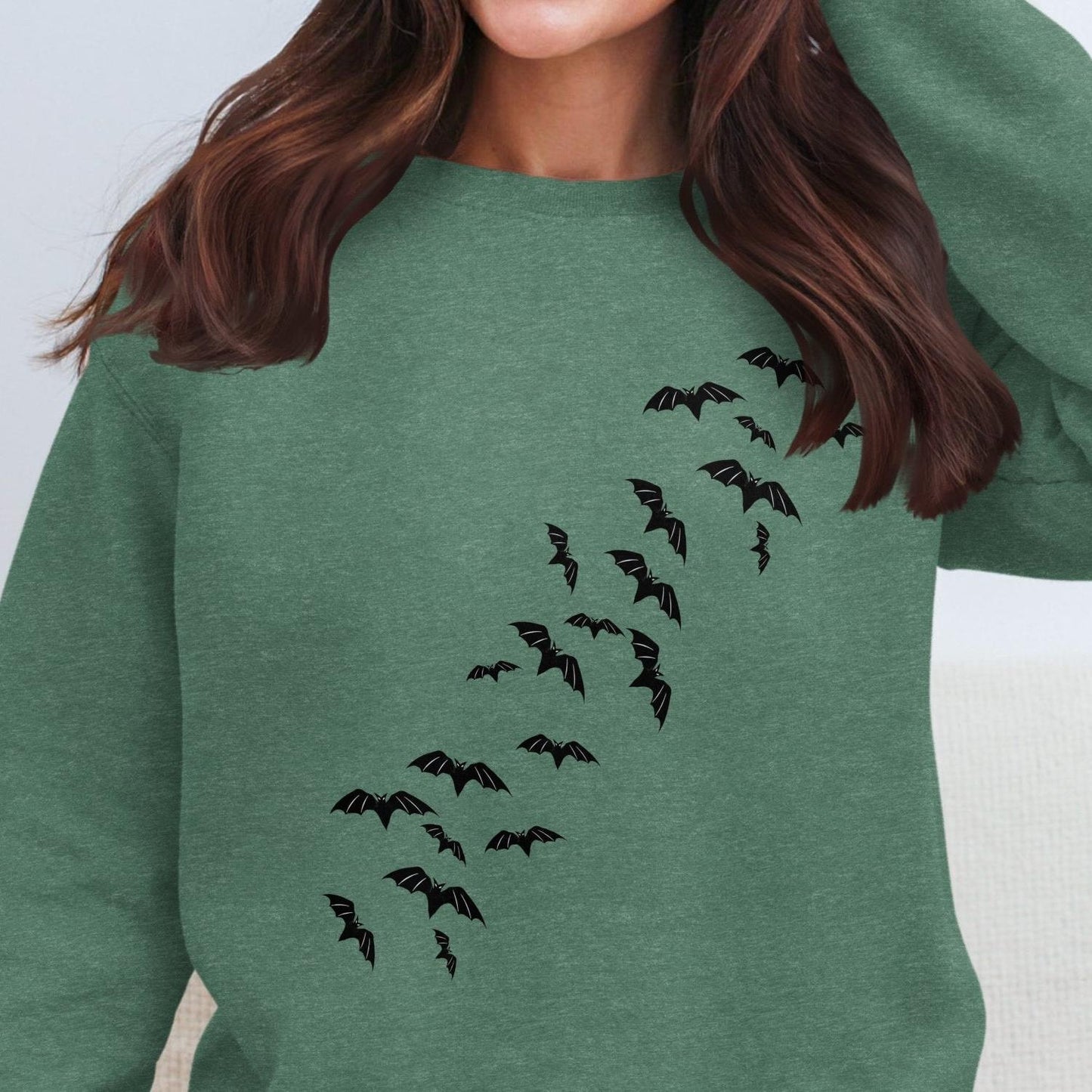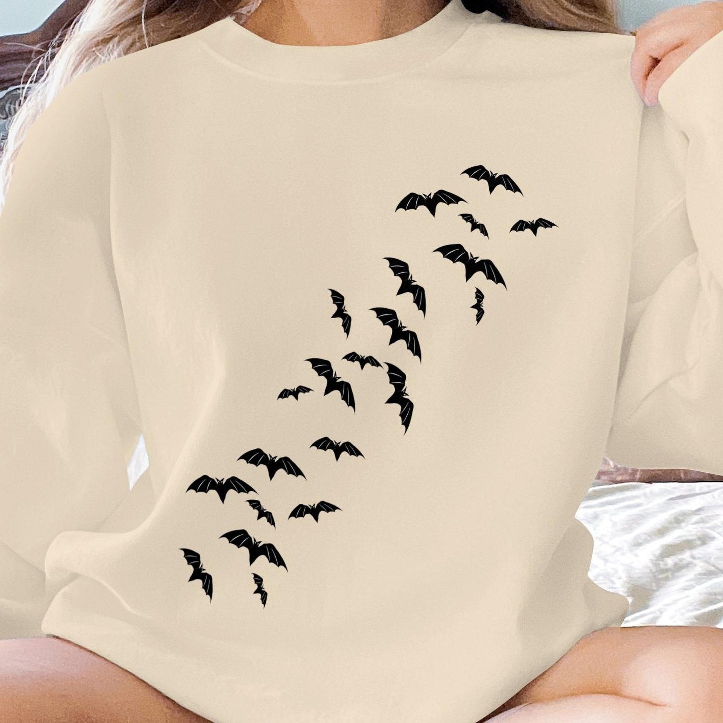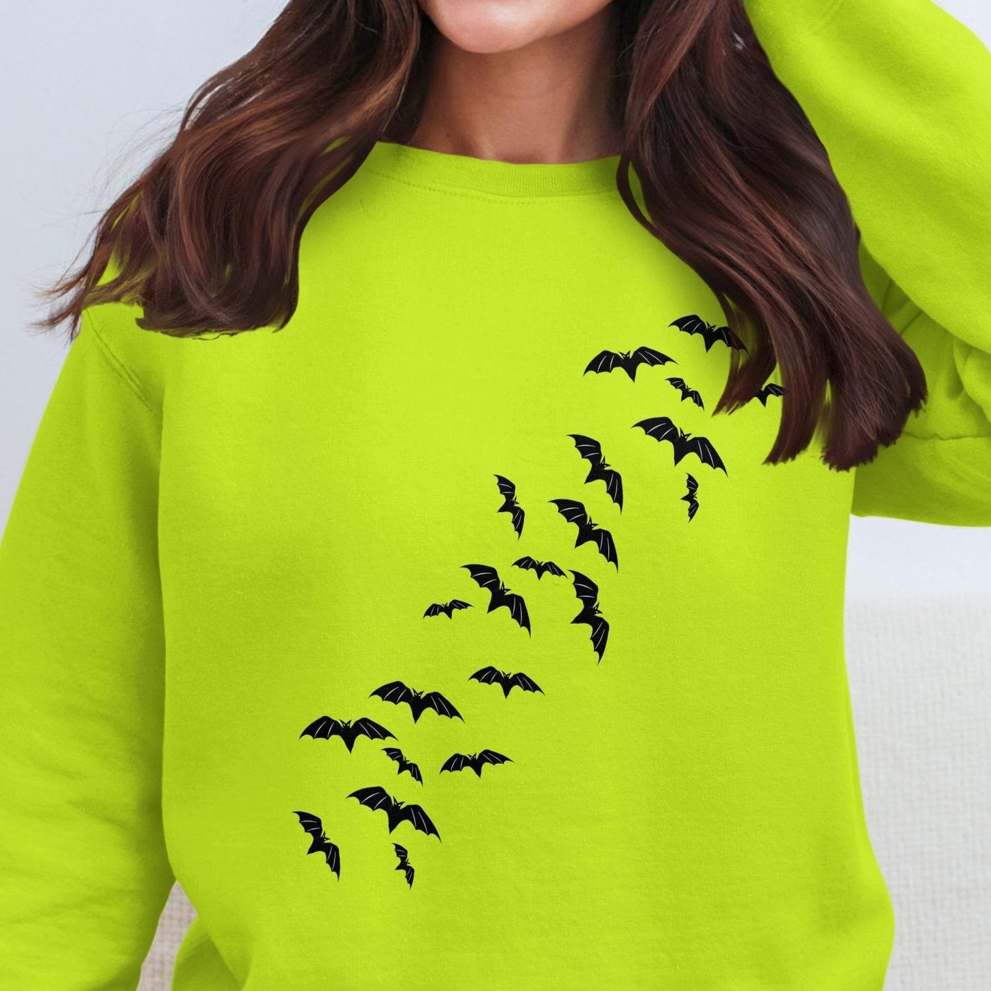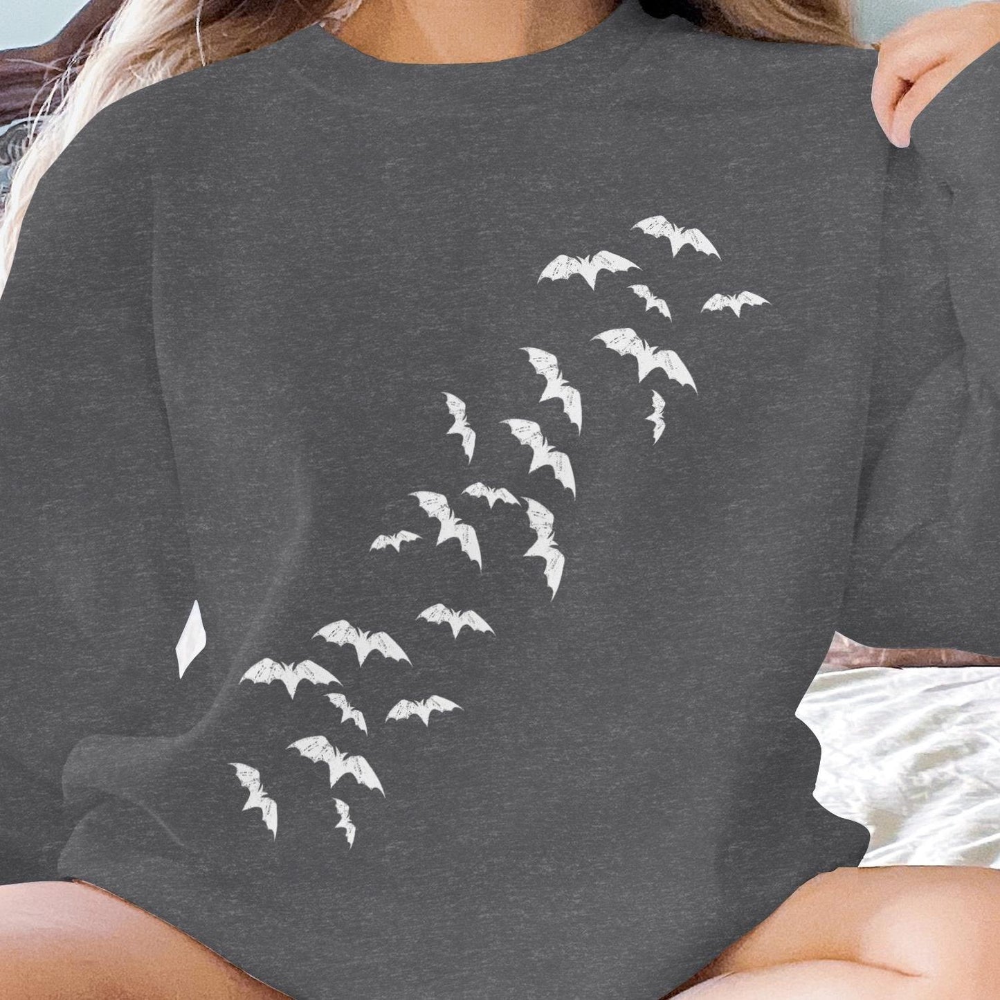 Embrace spooky vibes with these sweatshirts featuring detailed haunted house and pumpkin graphics. Perfect for Halloween festivities.
