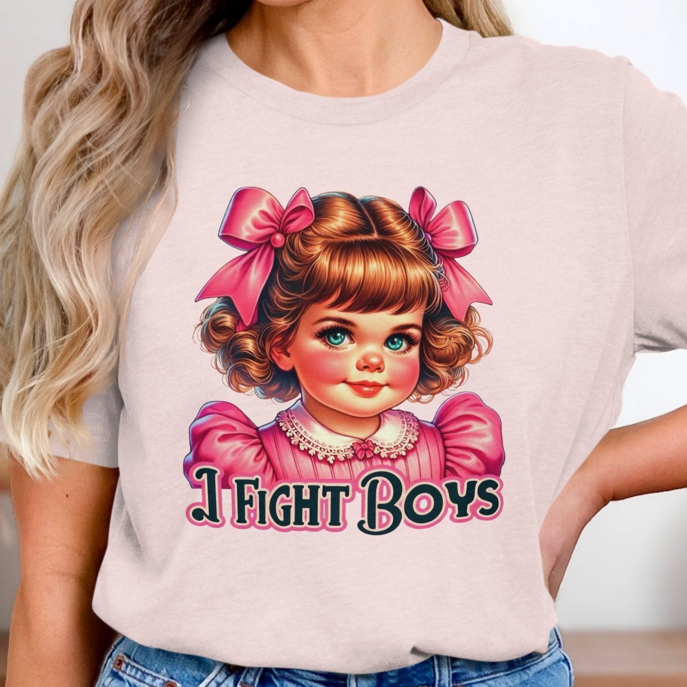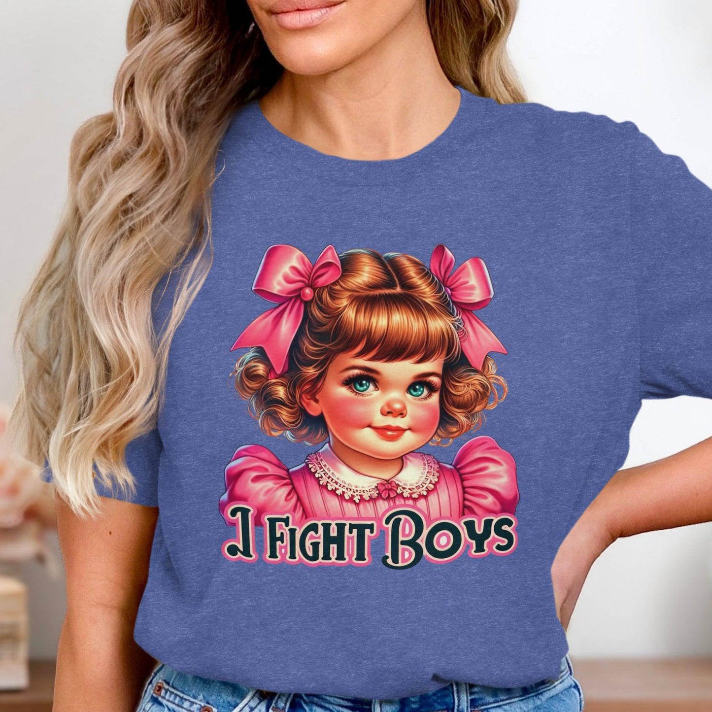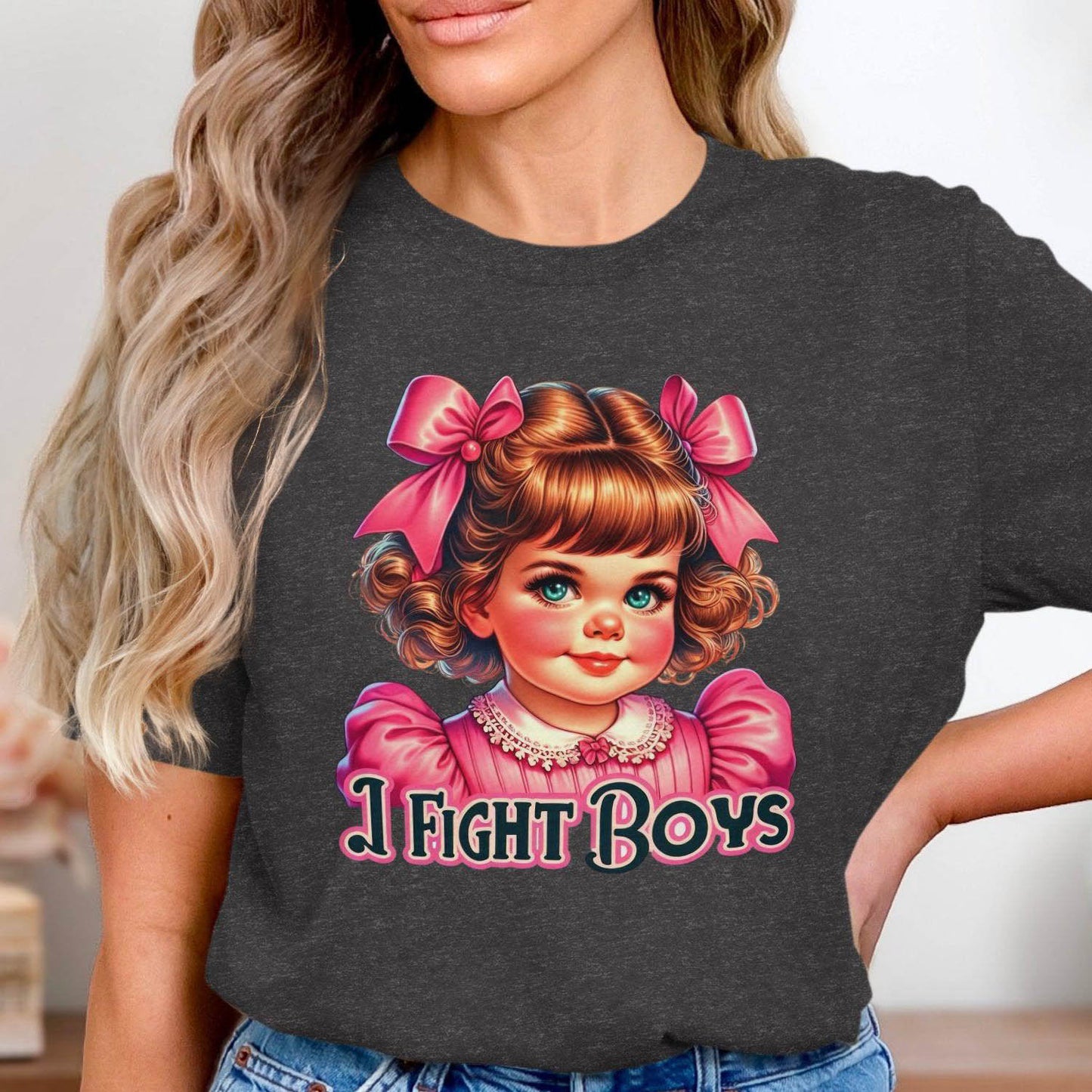 I Fight Boys T-Shirt, Funny Quote Tee, Cute Girl Shirt, Retro Style, Graphic Tee, Trendy T-Shirt, Stylish Design, Vintage Look