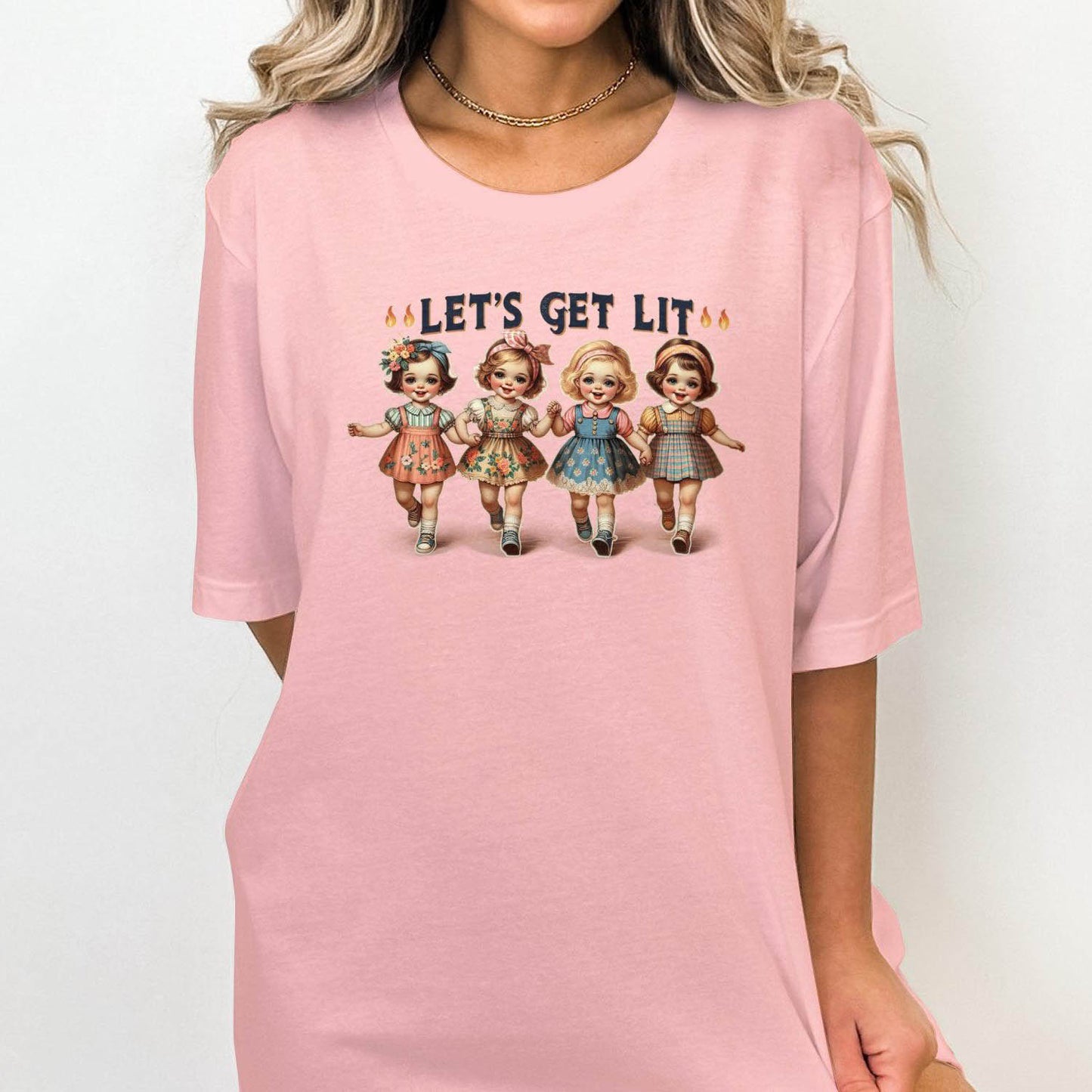 Let's Get Lit Retro Vintage Art T-Shirt, Cute Girls Graphic Tee