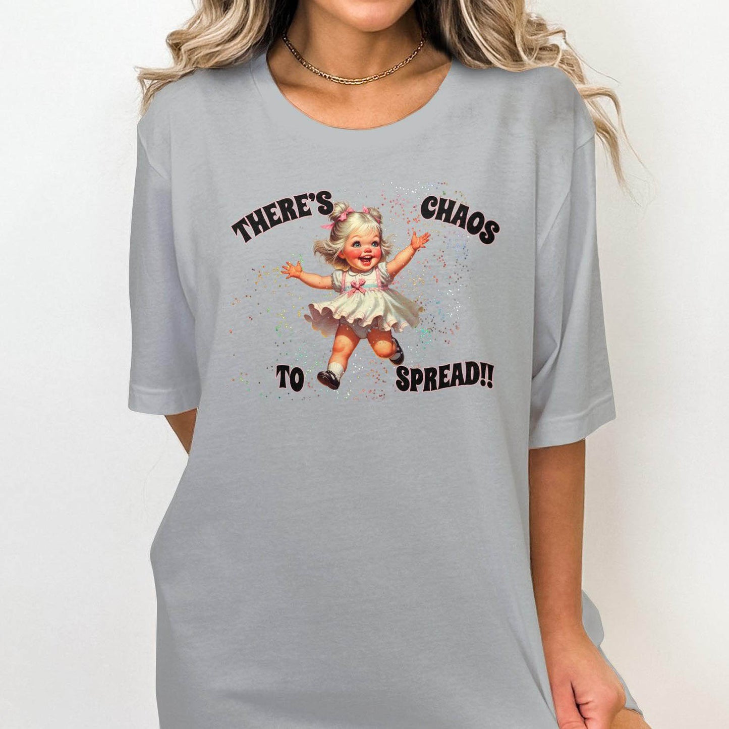 There's Chaos To Spread T-Shirt, Fun Graphic Tee, Funny Slogan Shirt, Humorous T-Shirt For Women, Casual Wear T-Shirt