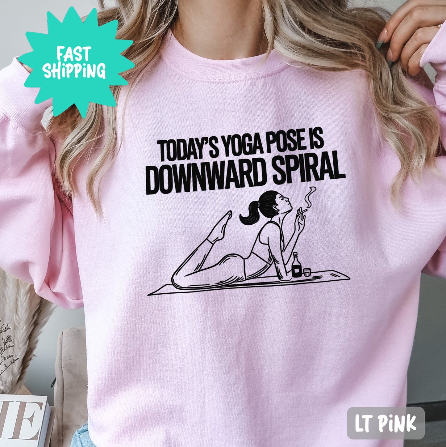 Today's Yoga Pose Is Downward Spiral Crewneck Sweatshirt, Funny Yoga Sweatshirt, Graphic Sweatshirt for Yoga Lovers