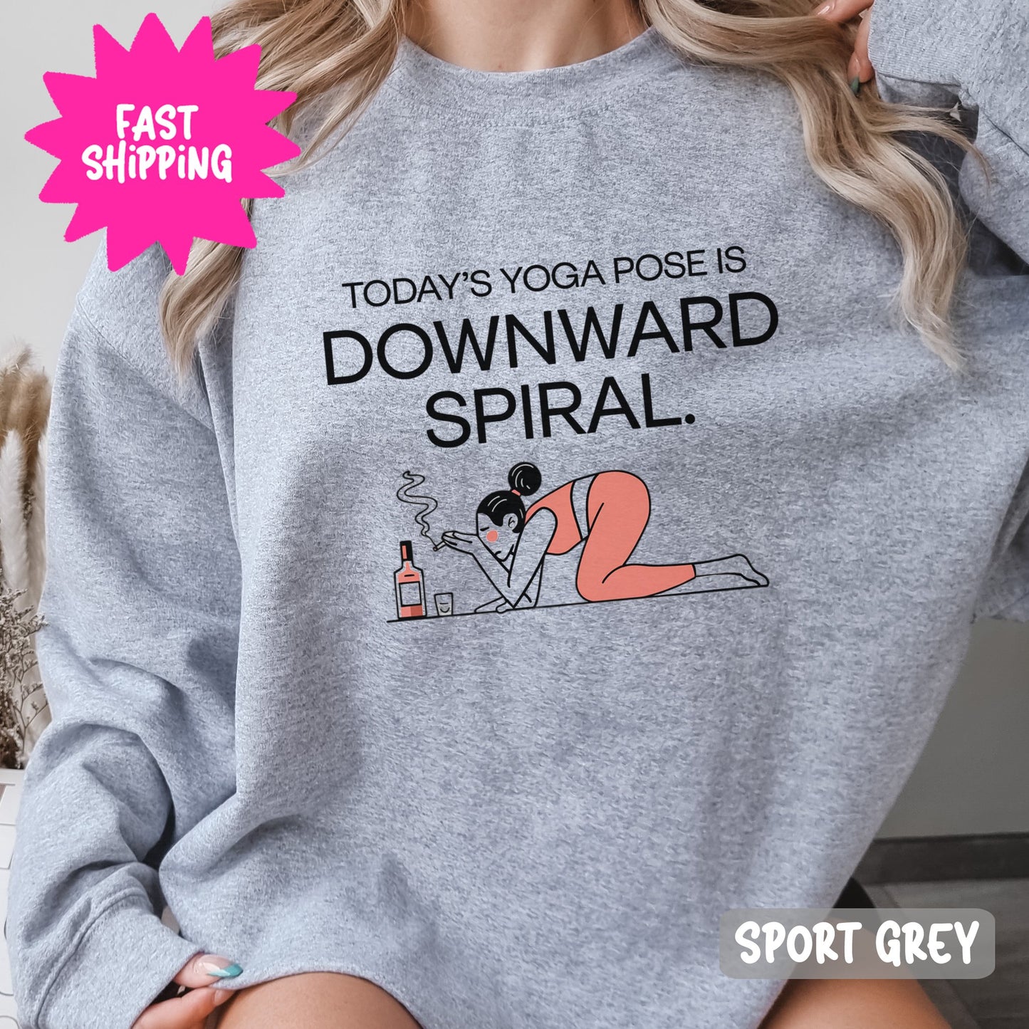 Today's Yoga Pose Is Downward Spiral, Crewneck Sweatshirt, Funny Yoga Sweatshirt, Wine Lover Gift, Relaxation Humor Sweater