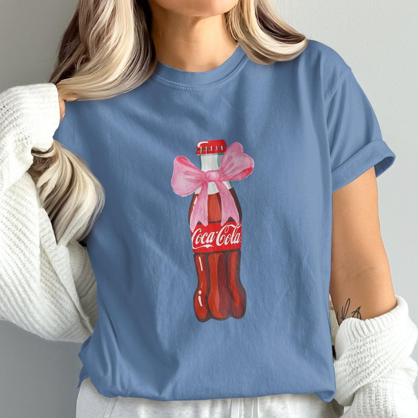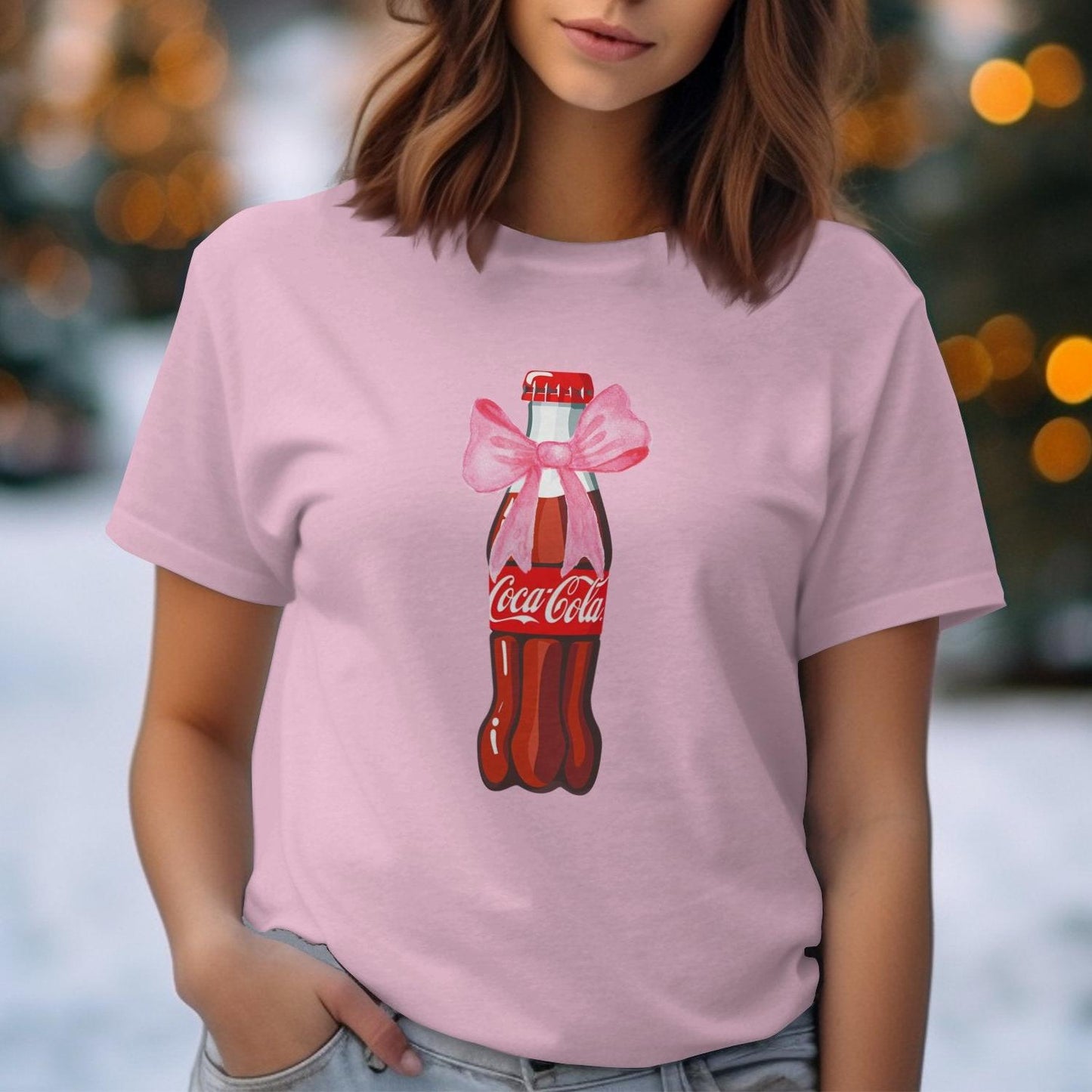 Discover our unique t-shirts featuring a fun cola bottle design with a bow. Perfect for casual wear and makes a great gift option.