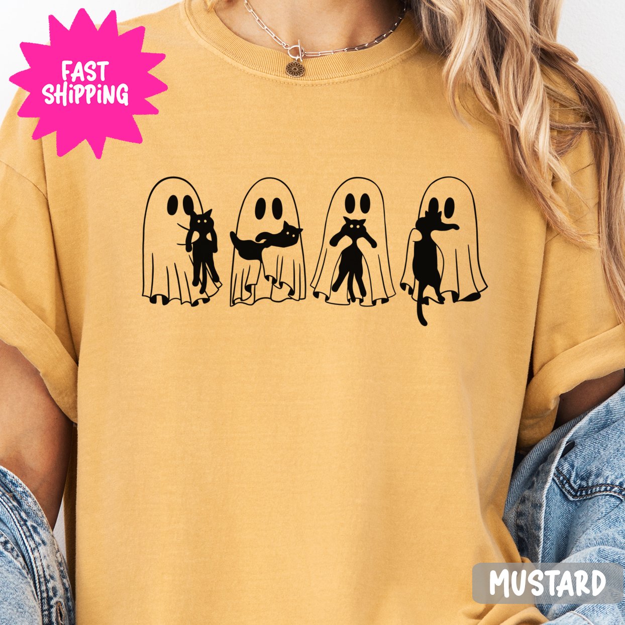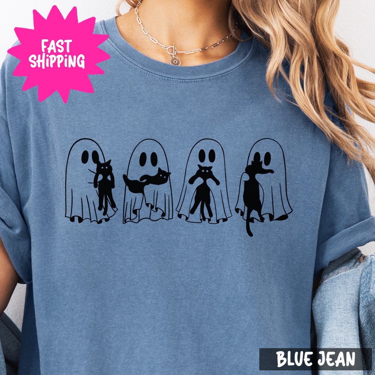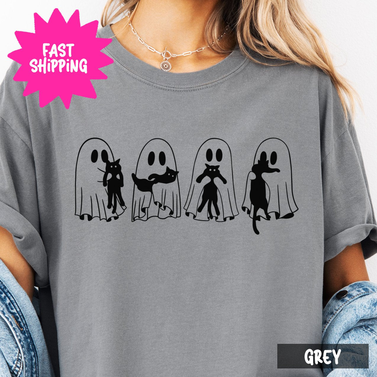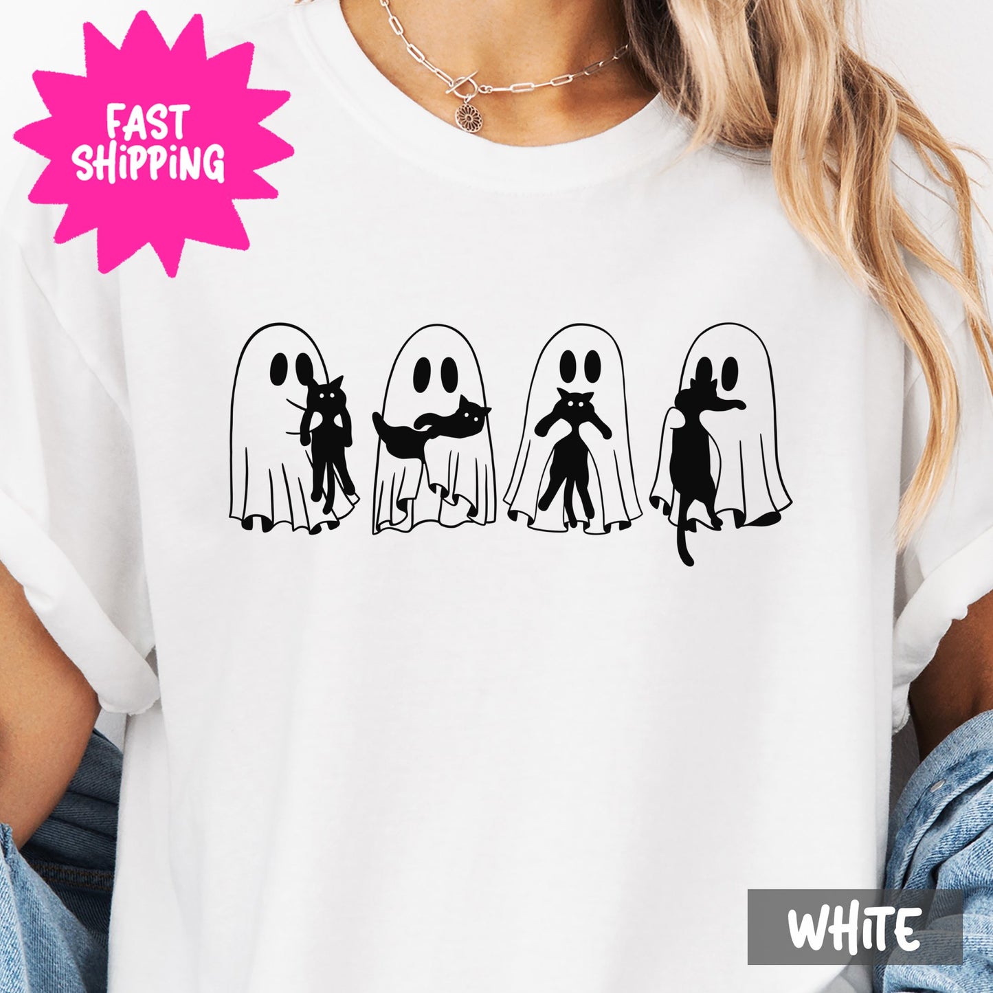 Cute Ghost Cats Graphic Comfort Colors T-Shirts