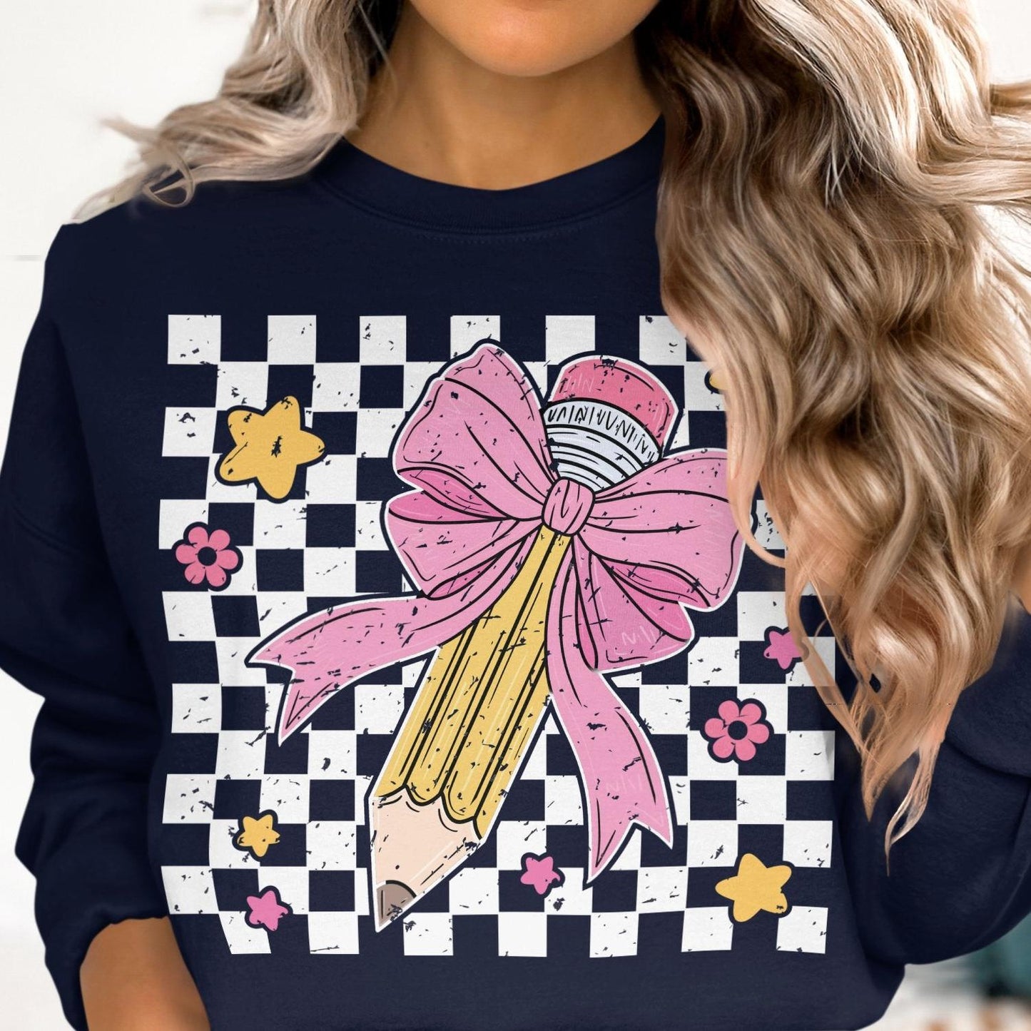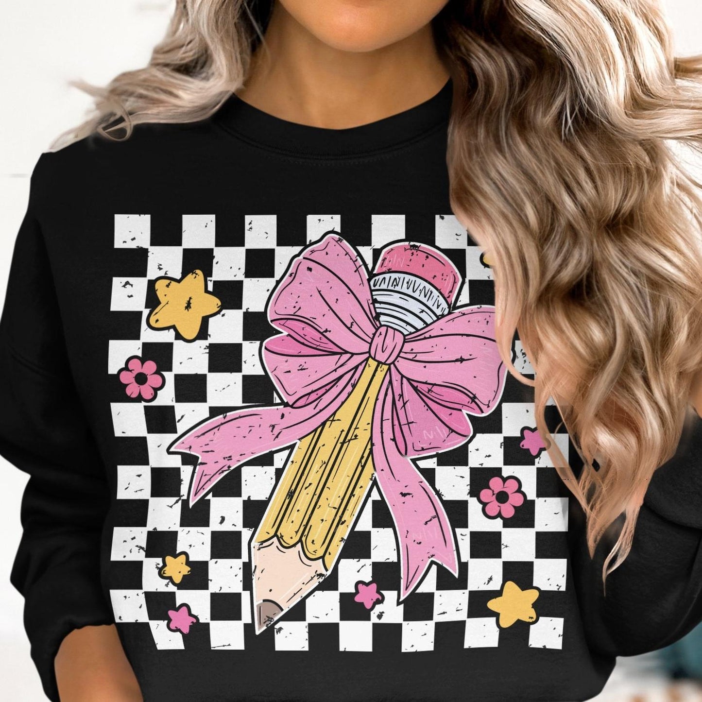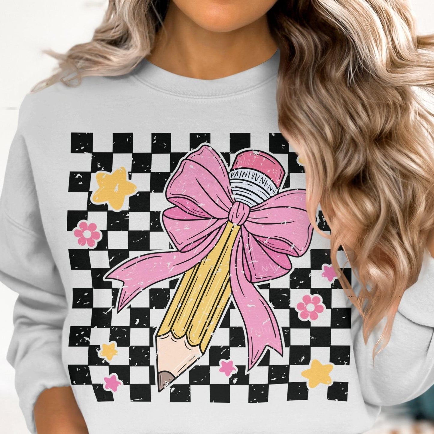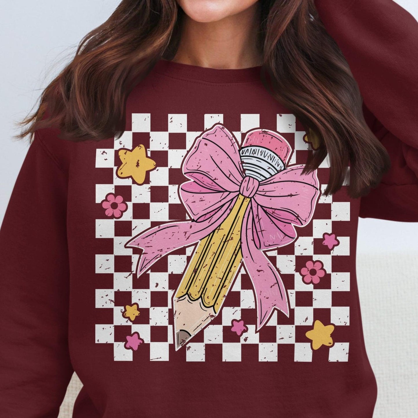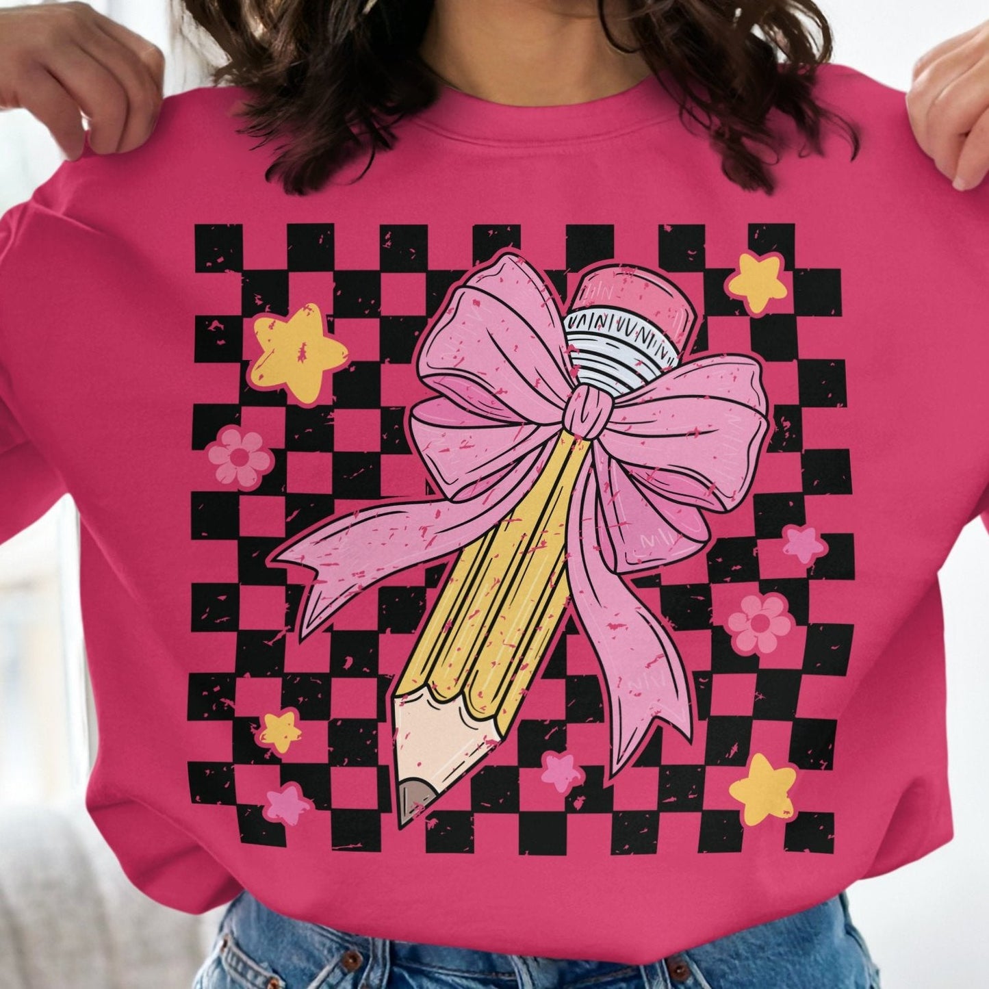 Cute Pencil With Pink Bow And Flowers Design Sweatshirt For Creative Minds