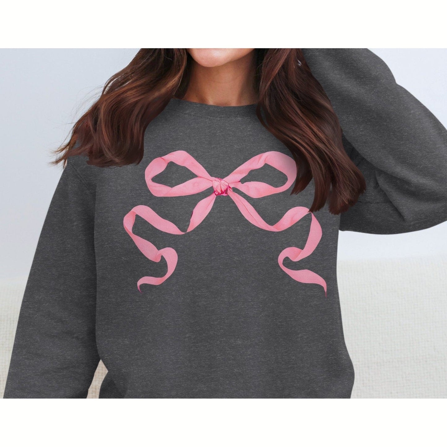 Cute Pink Ribbon Bow Design Sweatshirt, Unique Graphic Sweatshirt, Cozy Casual Wear, Chic Trendy Style, Fashionable Top