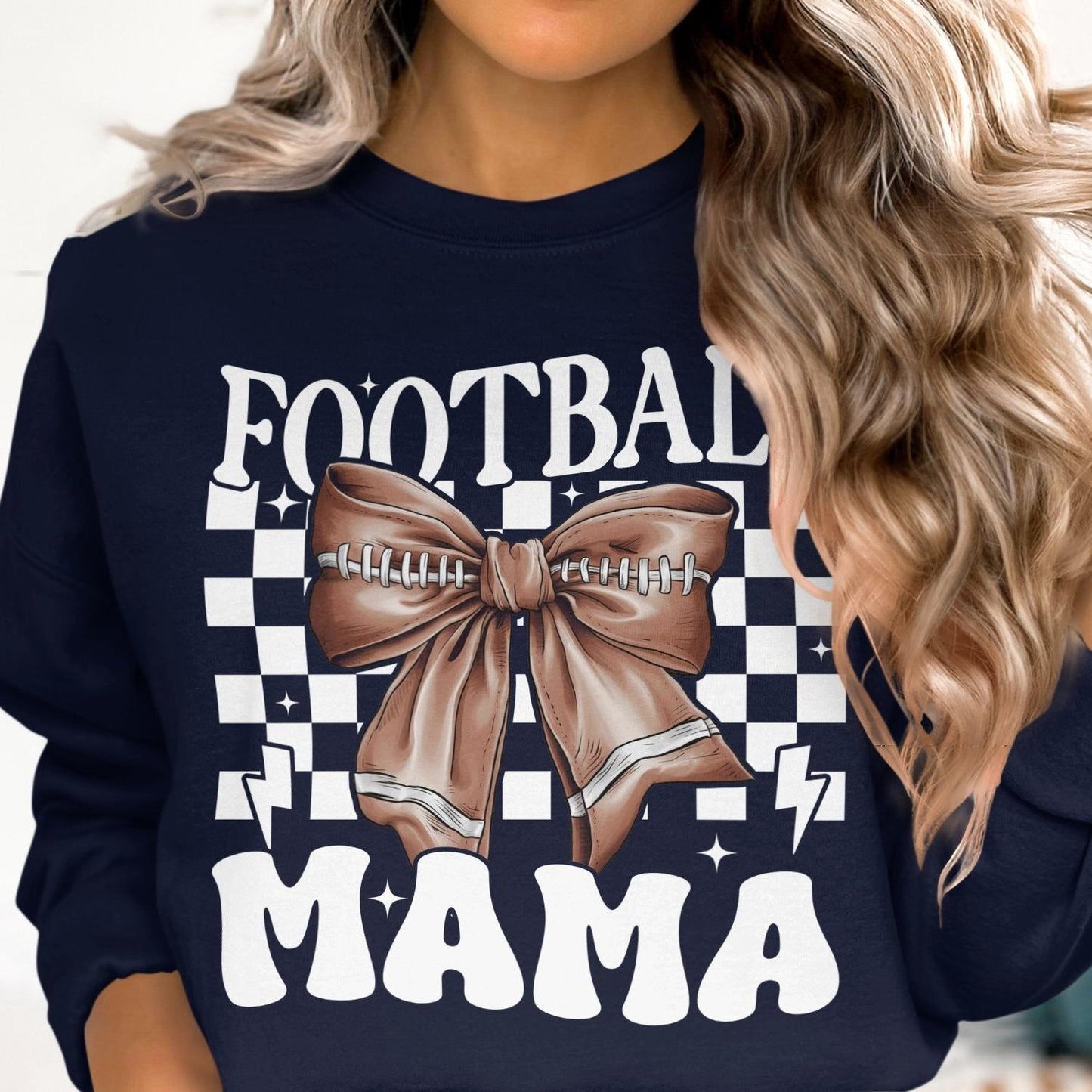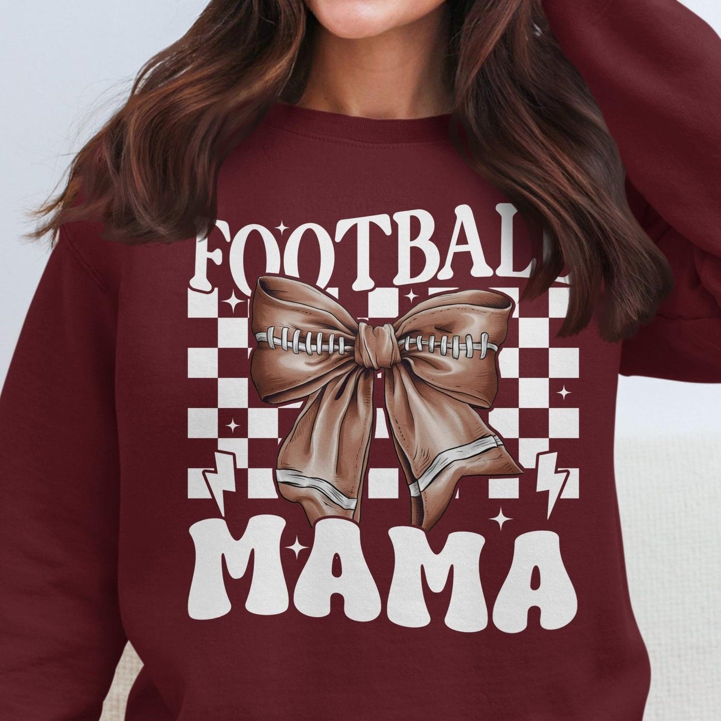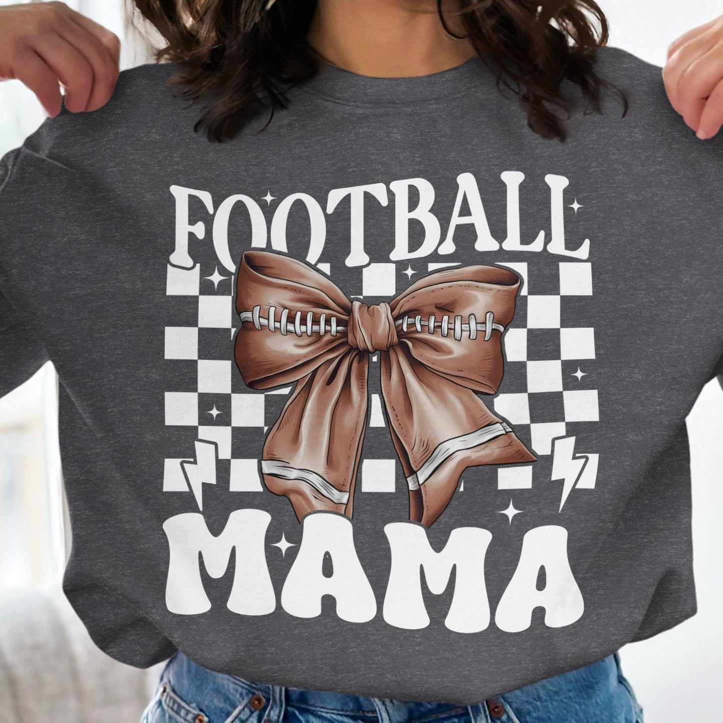 Football Mama Bow Graphic Sweatshirt, Cute Sports Mom Tee, Game Day Apparel