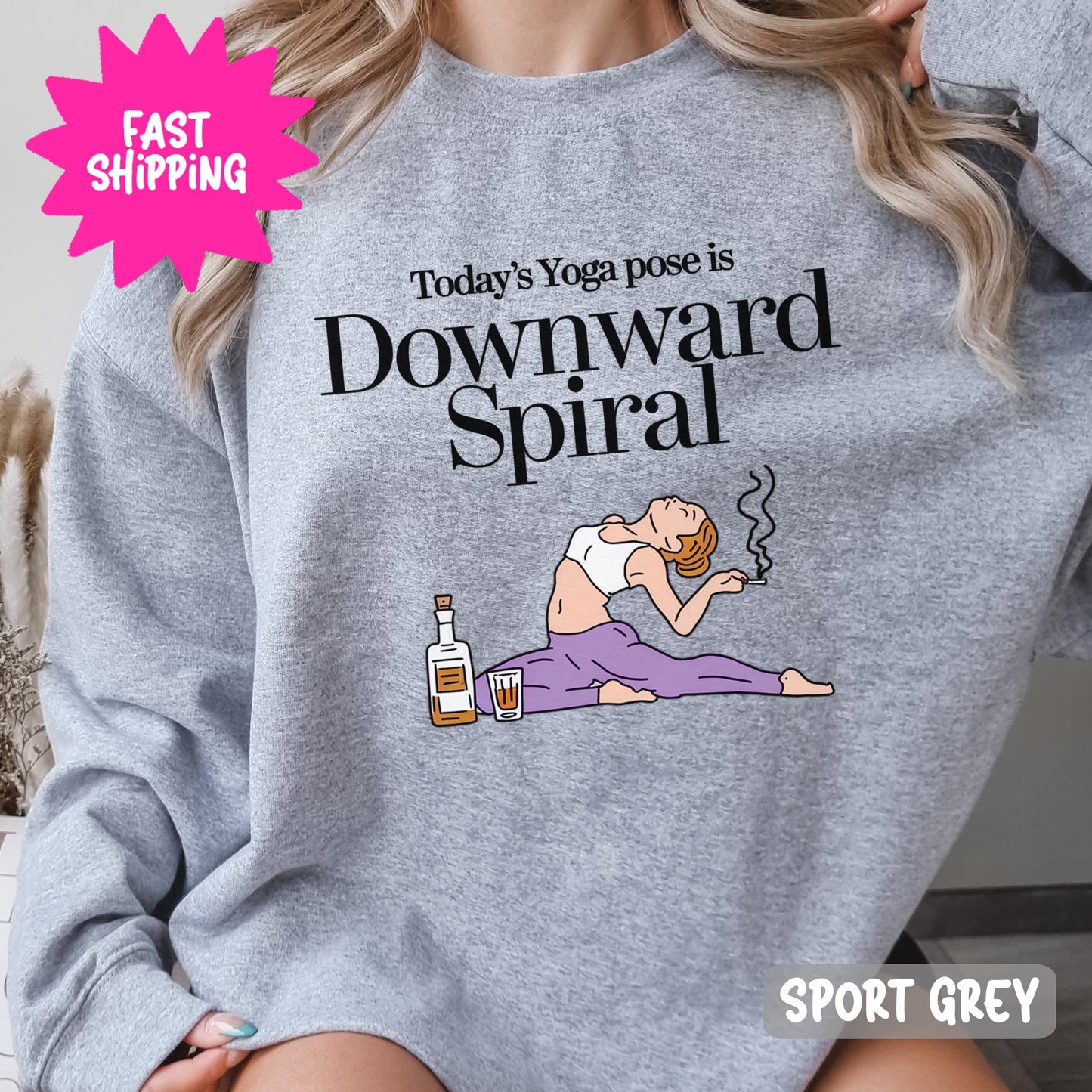 Funny Meme Crewneck Sweatshirt, Downward Spiral Graphic, Humorous Sweatshirt, Yoga Joke Apparel, Gift for Yoga Lovers