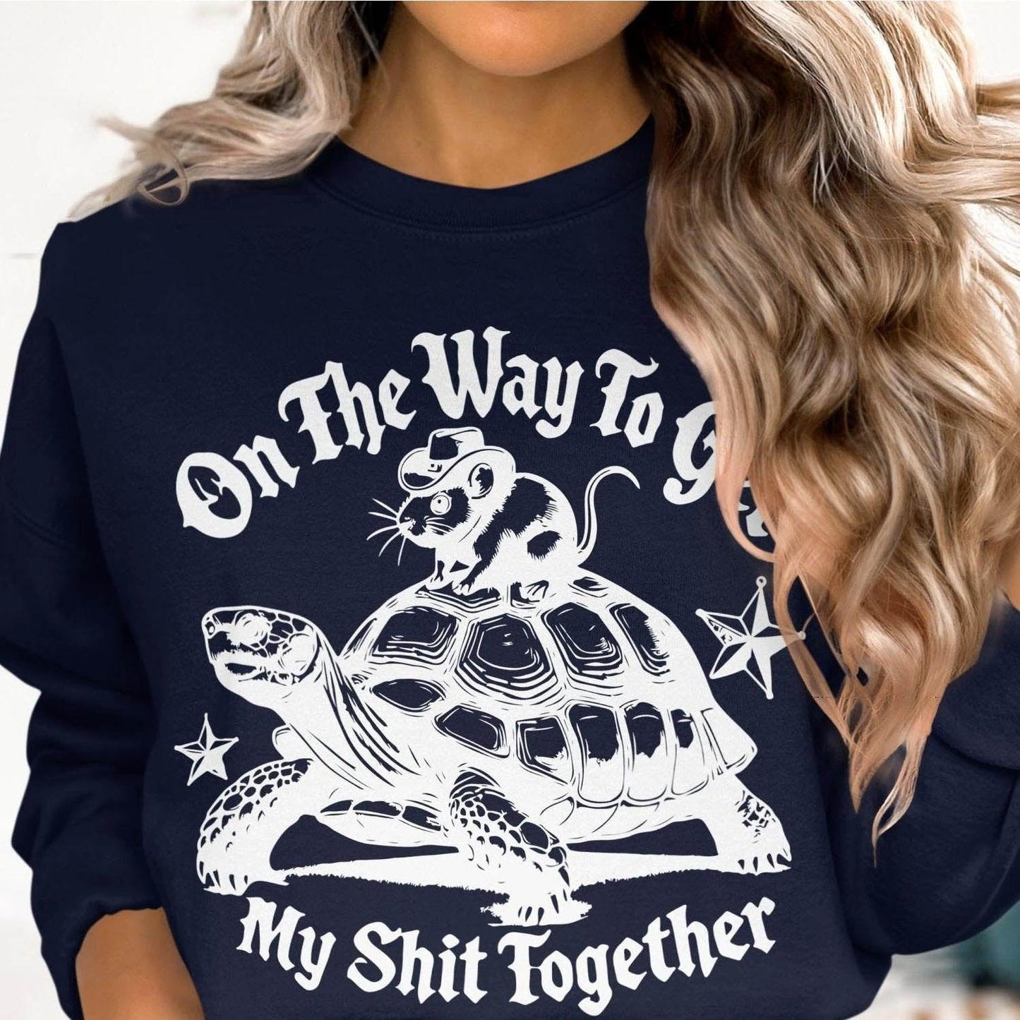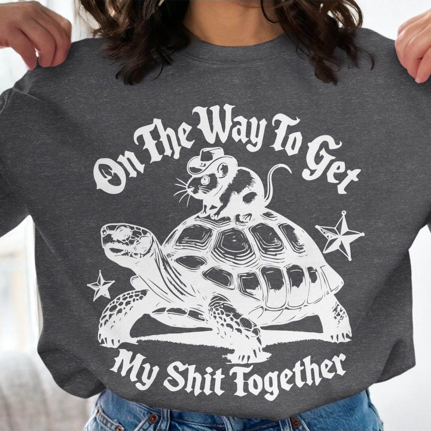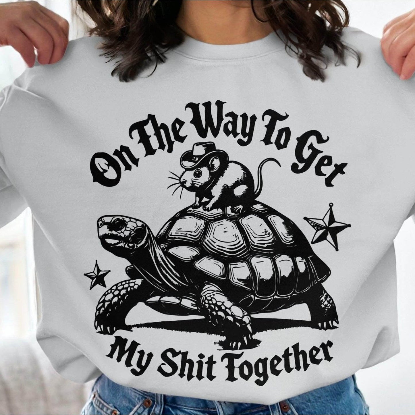 Funny Mouse On Turtle Graphic Sweatshirt, Perfect For Animal Lovers, Quirky Gift Idea