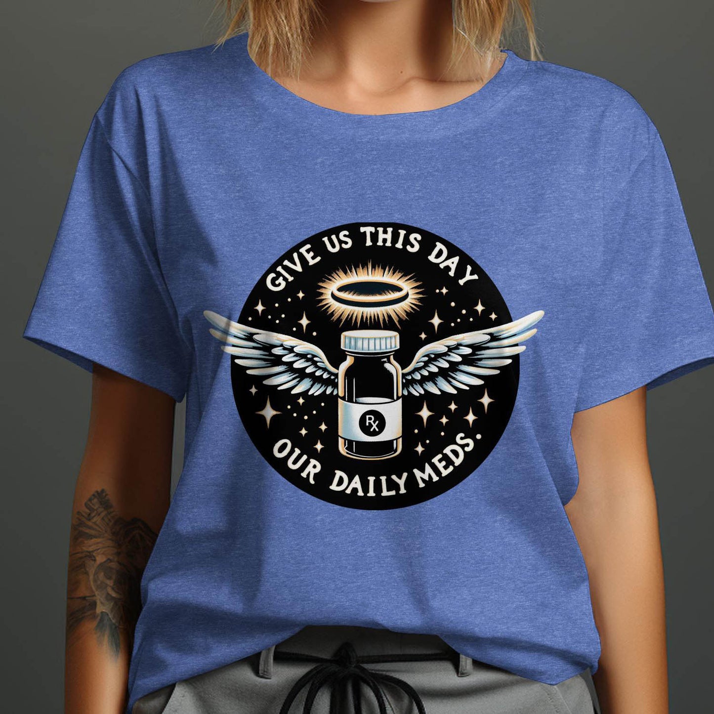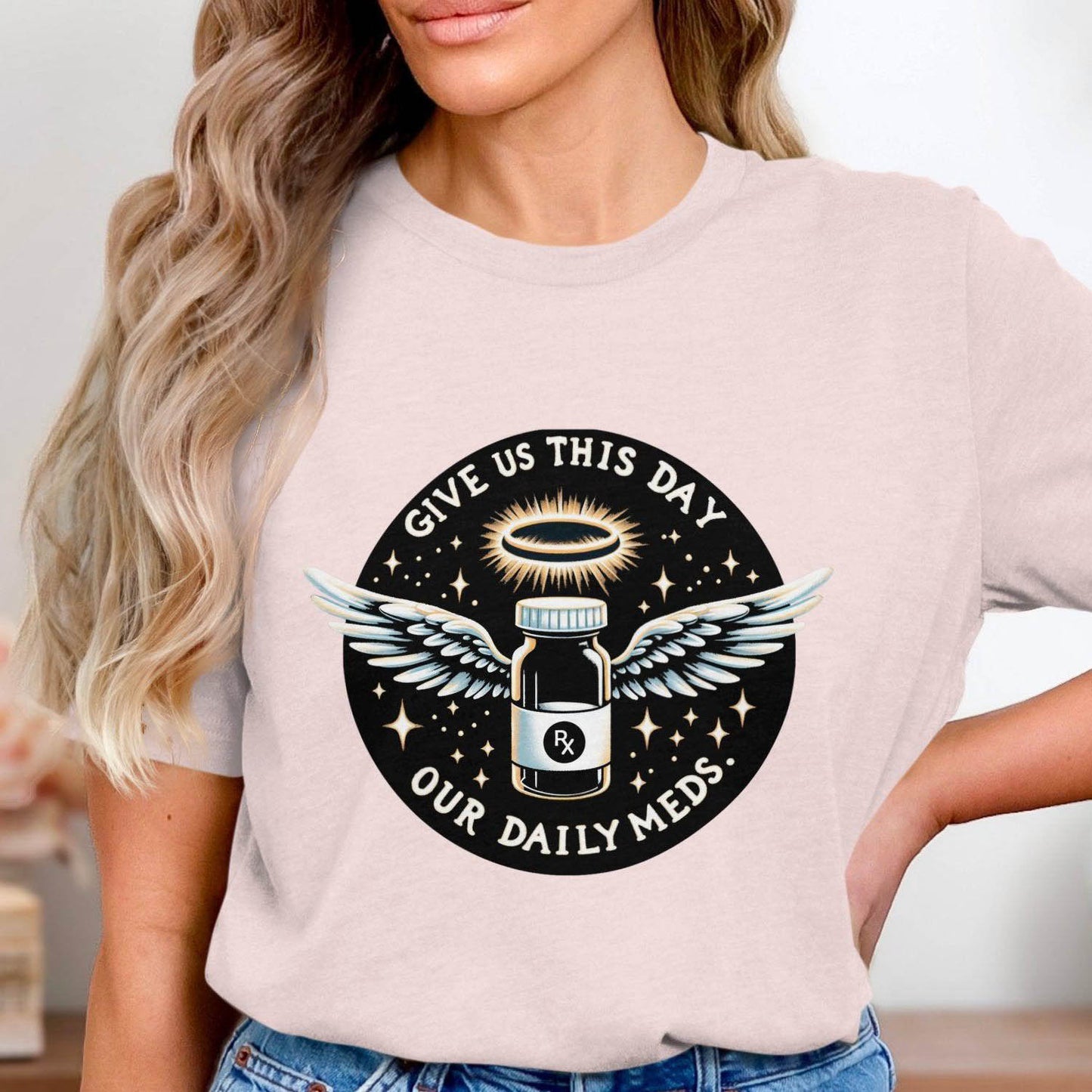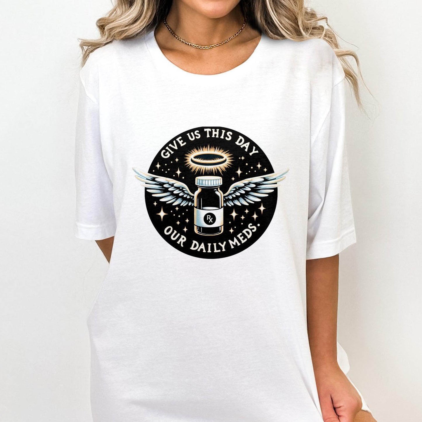 Give Us This Day Our Daily Meds T-Shirt, Funny Rx Prescription T-Shirt, Angel Medication Graphic Tee, Cute T-Shirt for Medical Workers