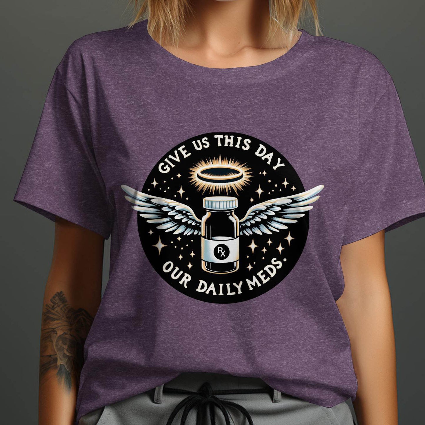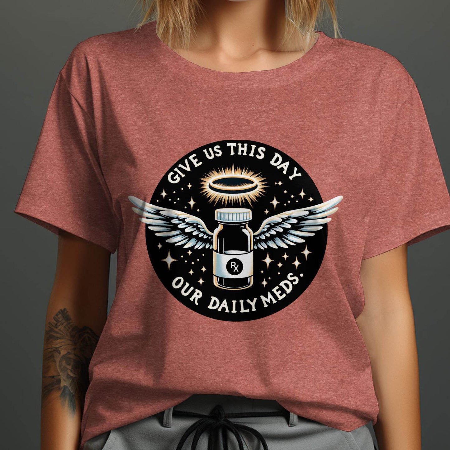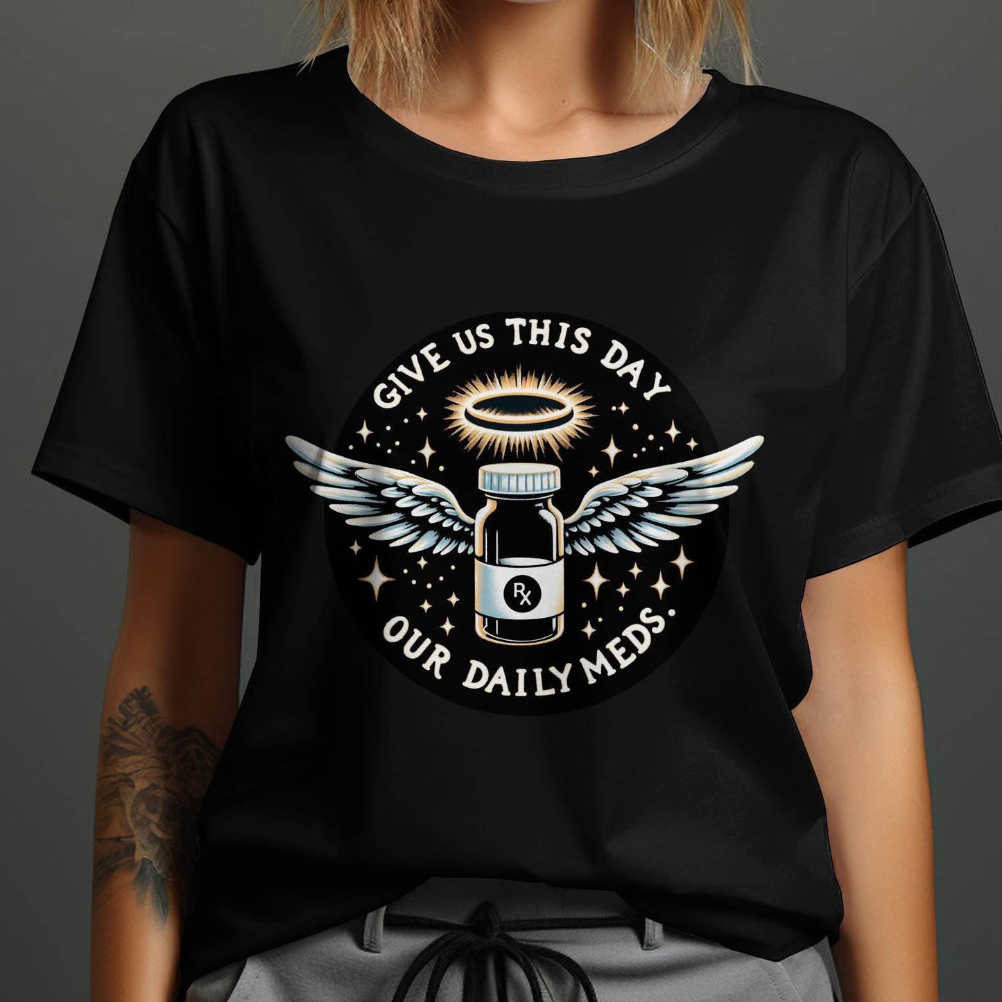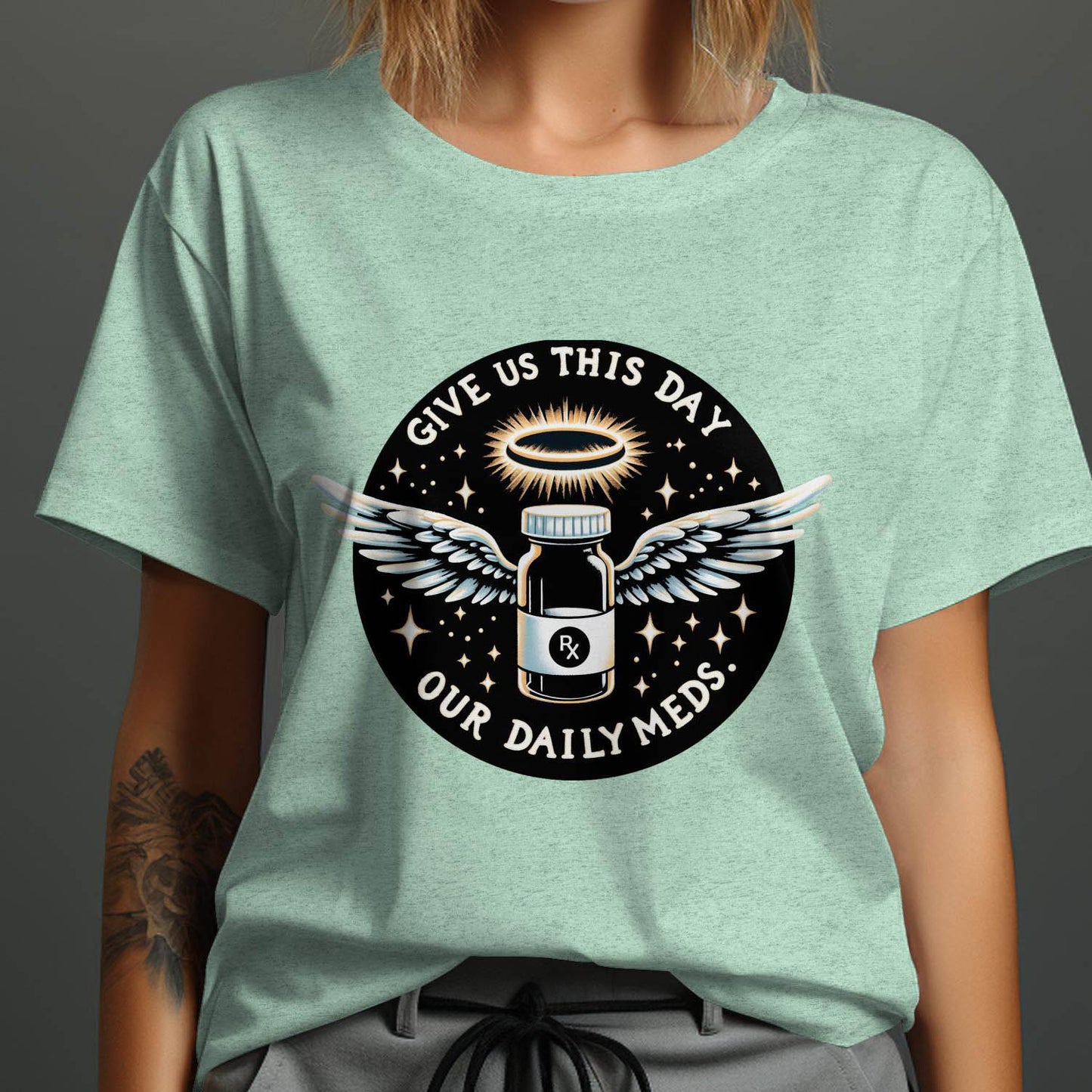 Give Us This Day Our Daily Meds T-Shirt, Funny Rx Prescription T-Shirt, Angel Medication Graphic Tee, Cute T-Shirt for Medical Workers