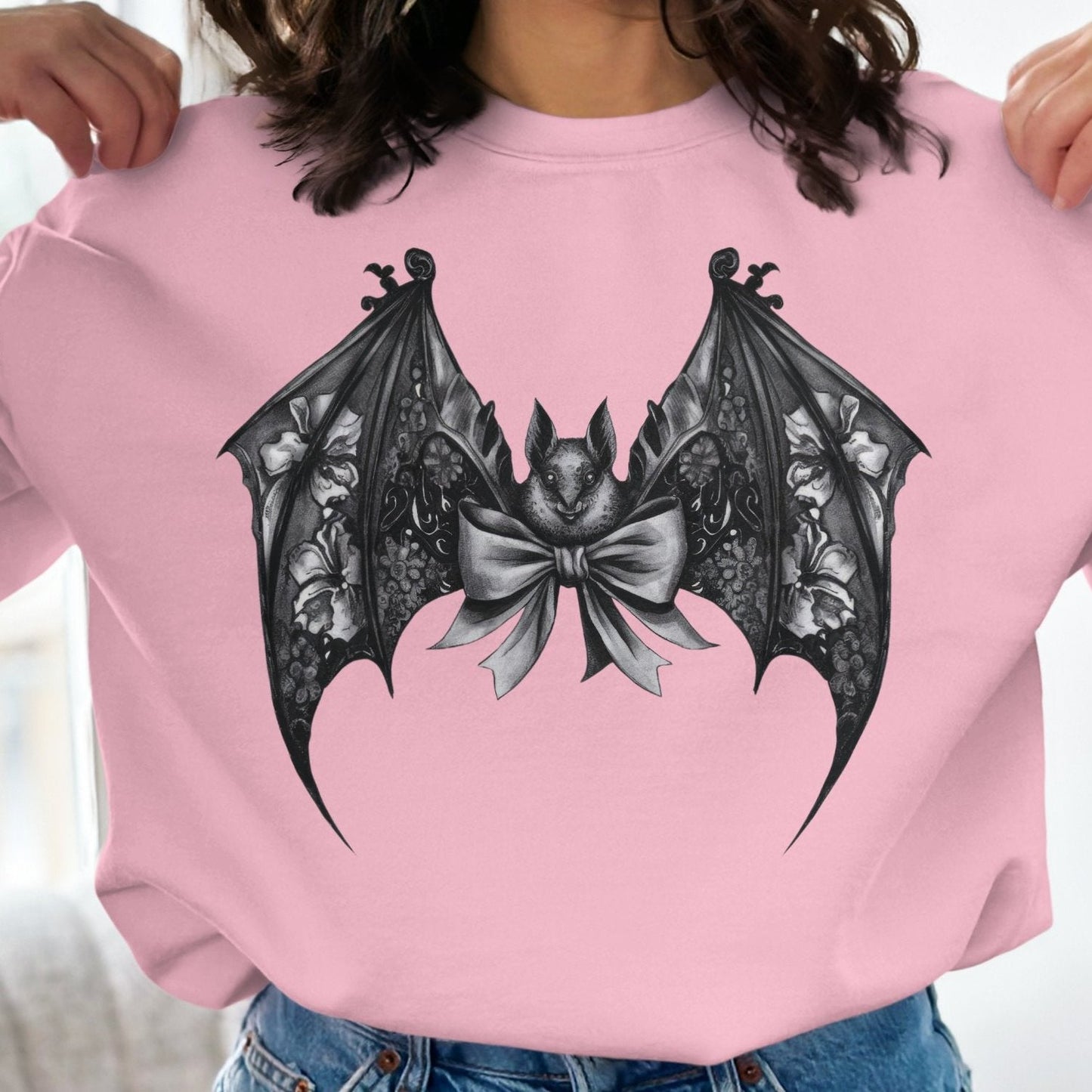 Gothic Bat With Floral Design Halloween Sweatshirt