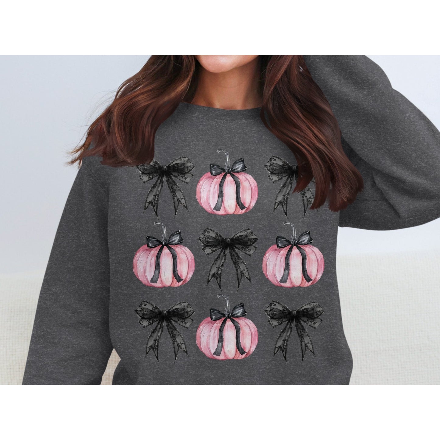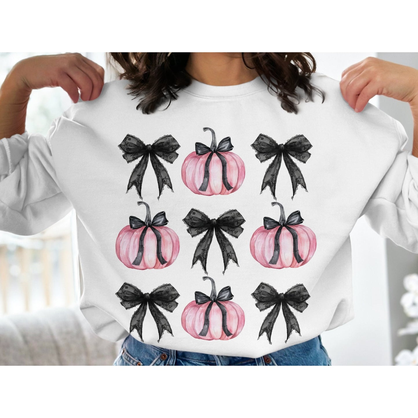 Halloween Bow Pumpkin Sweatshirt, Gothic Pink Pumpkin Print, Cute Halloween Clothes, Fall Fashion, Spooky Season