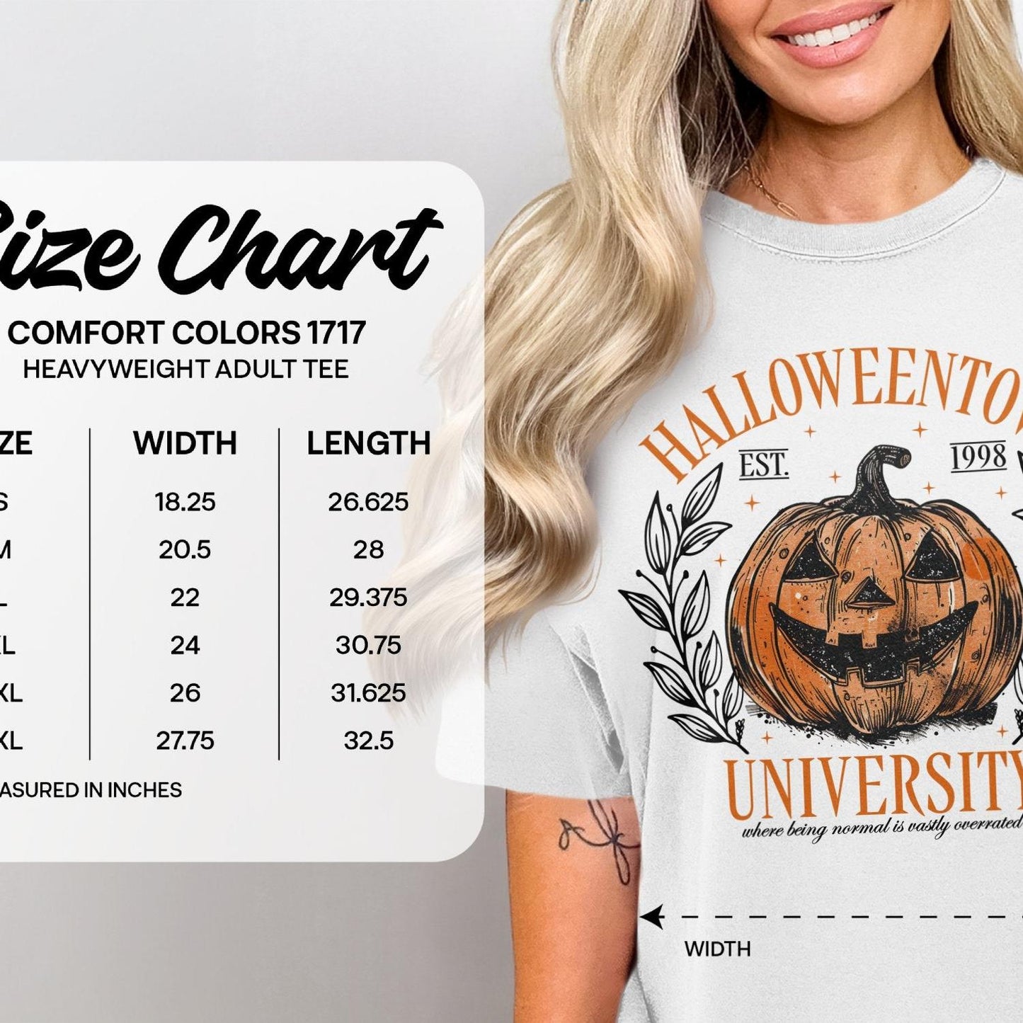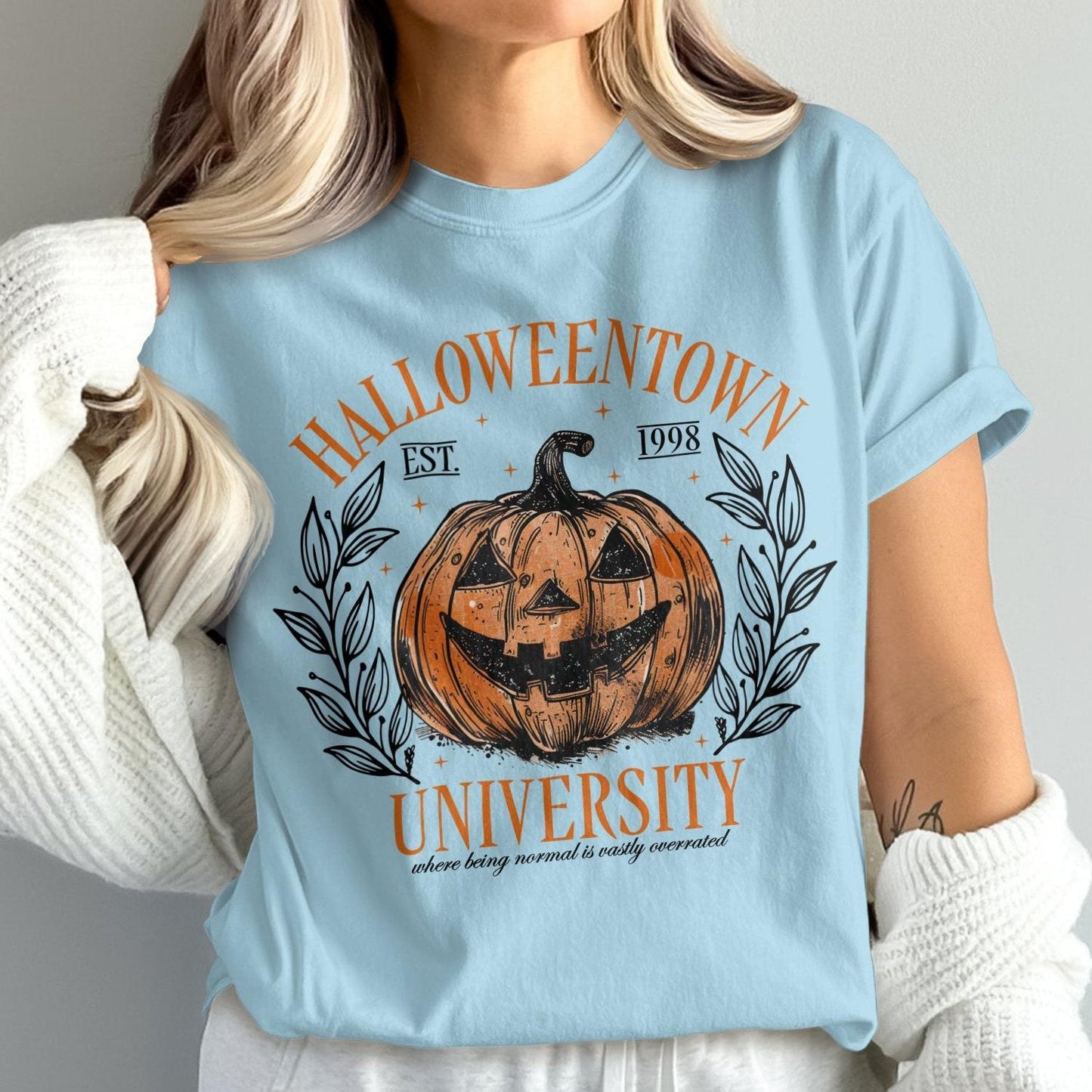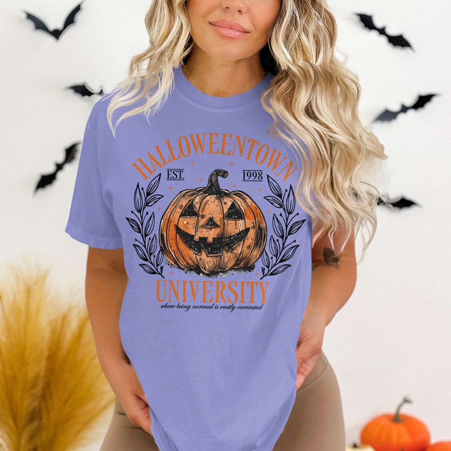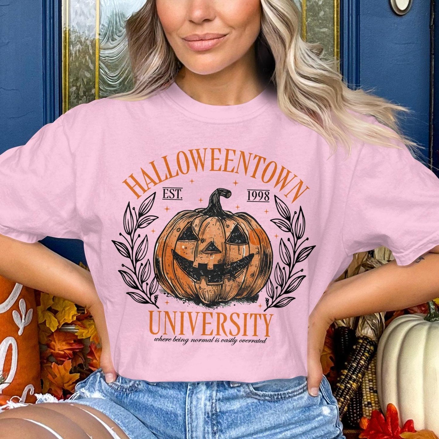 Discover Halloweentown University Comfort Colors T-Shirts designed with a vintage pumpkin graphic. Embrace the Halloween spirit for everyday wear.