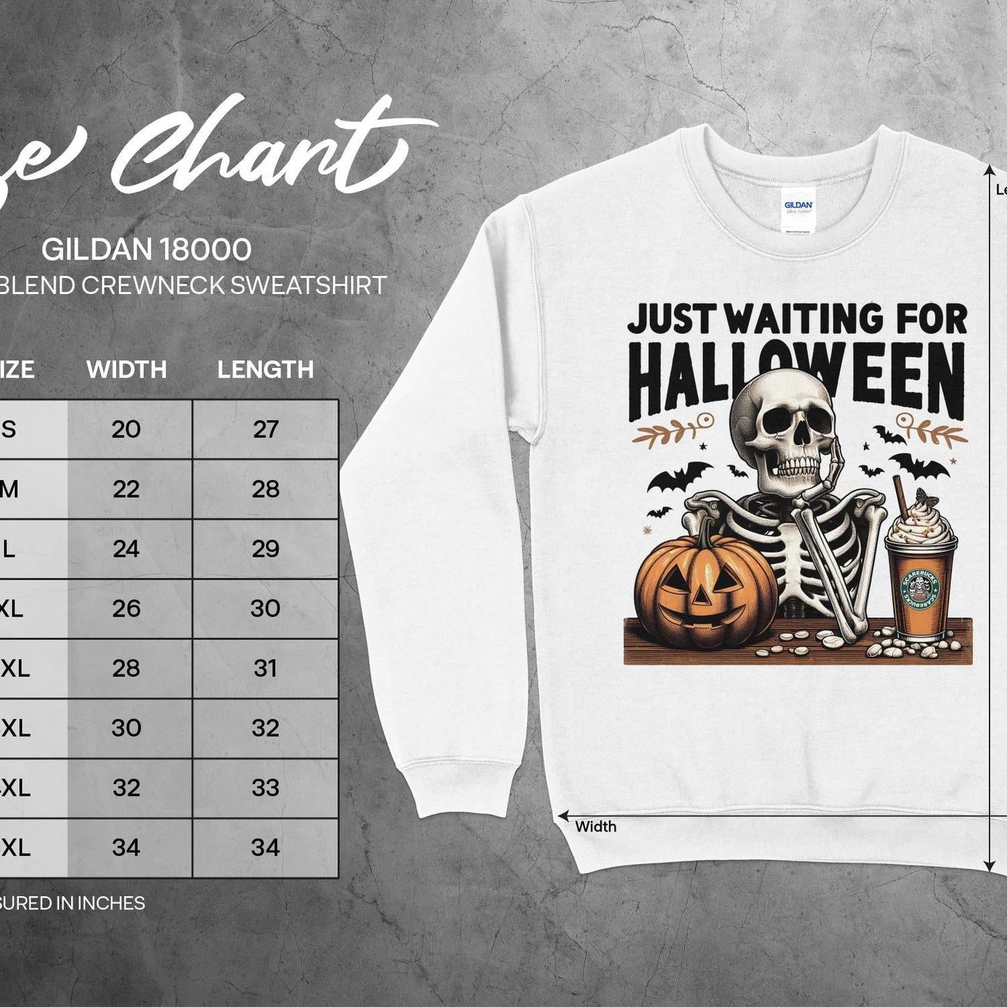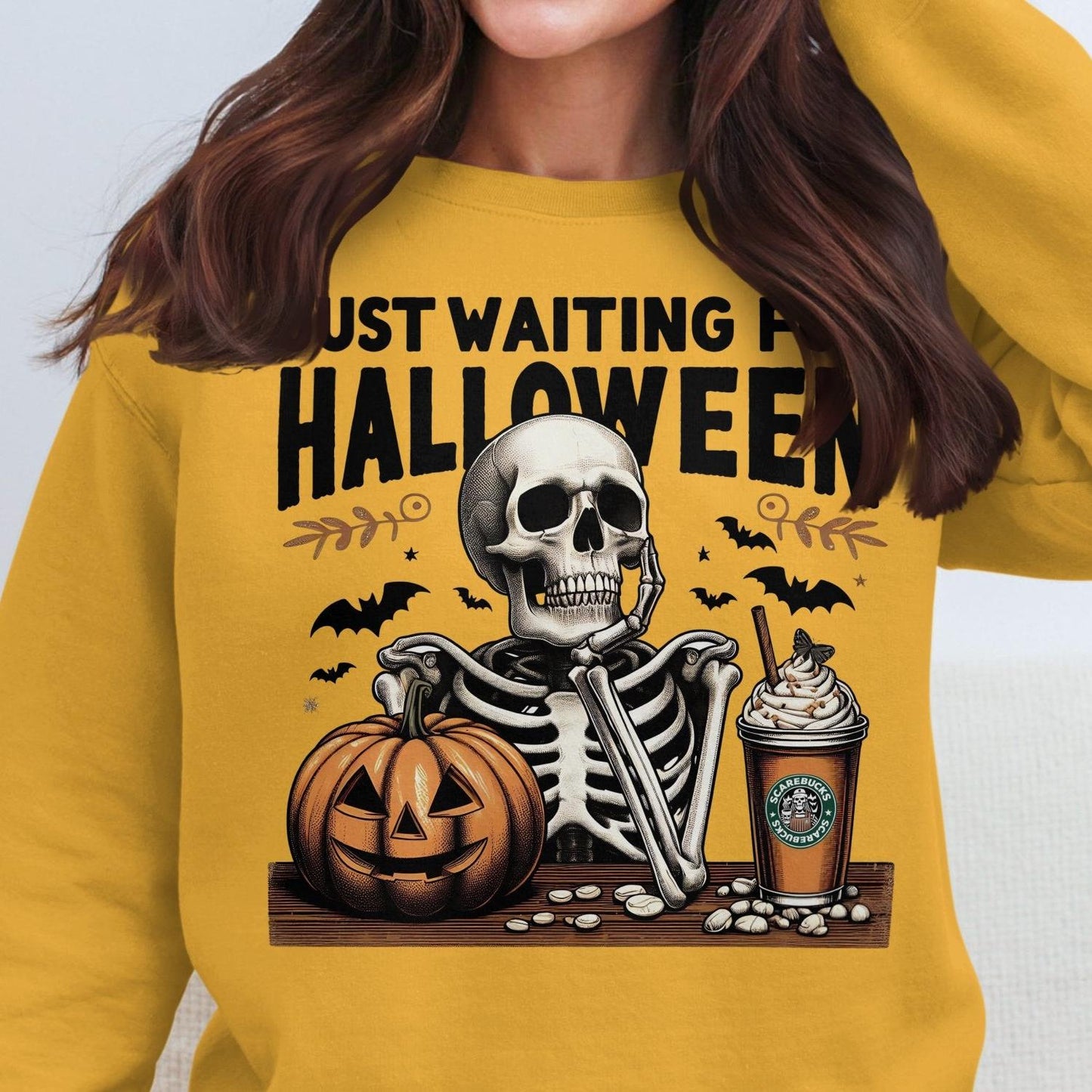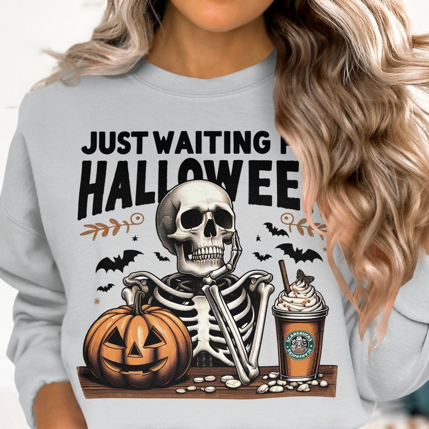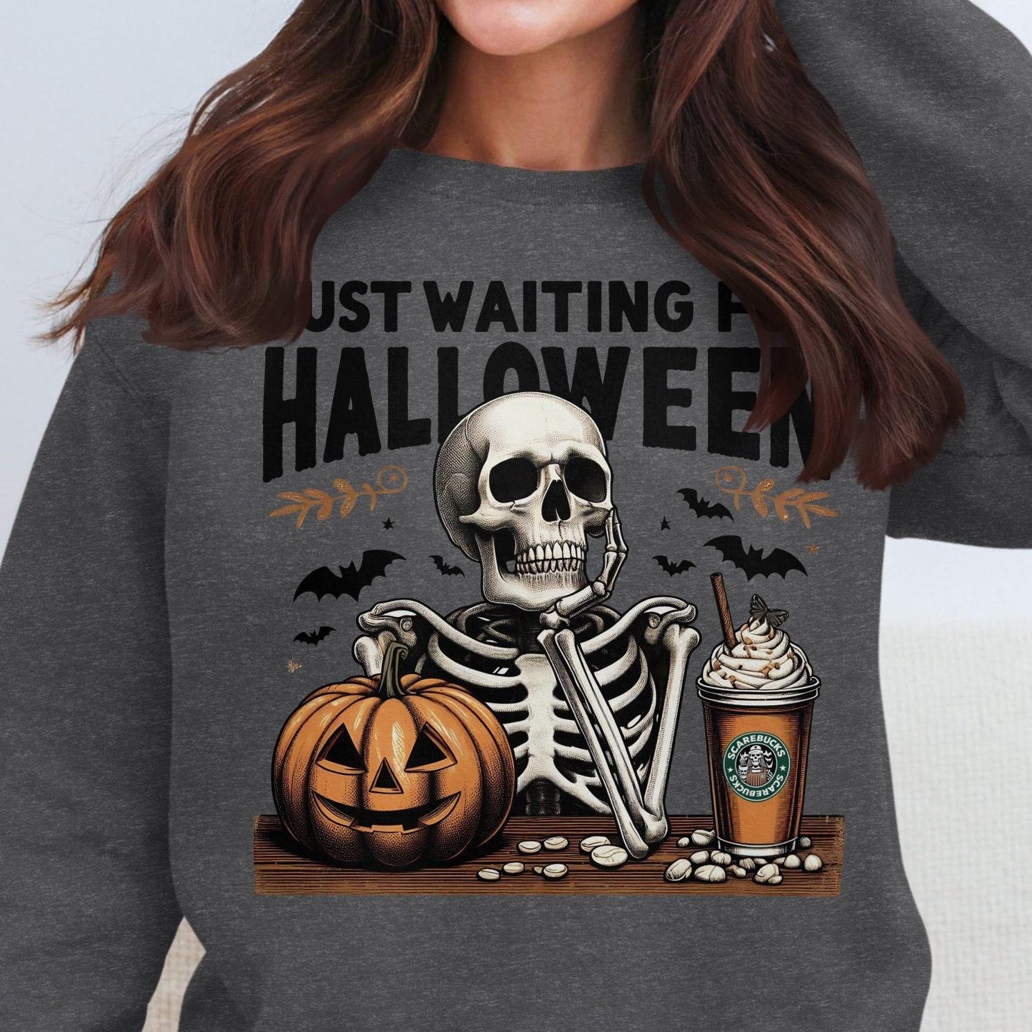 Just Waiting for Halloween Skeleton Pumpkin Sweatshirt