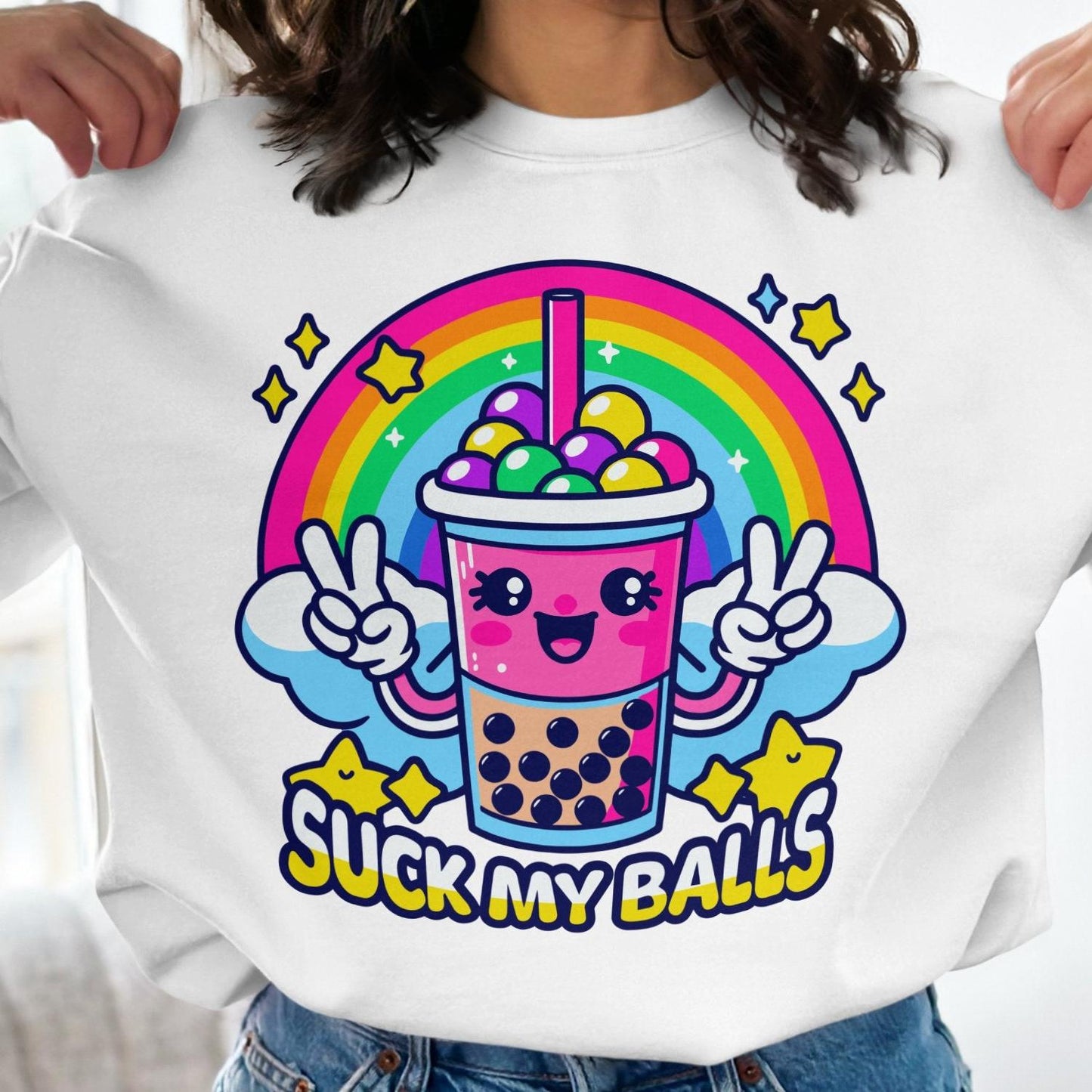 Kawaii Boba Tea Sweatshirt, Rainbow Boba Drink Graphic, Whimsical Drink Design, Cute Bubble Tea Apparel