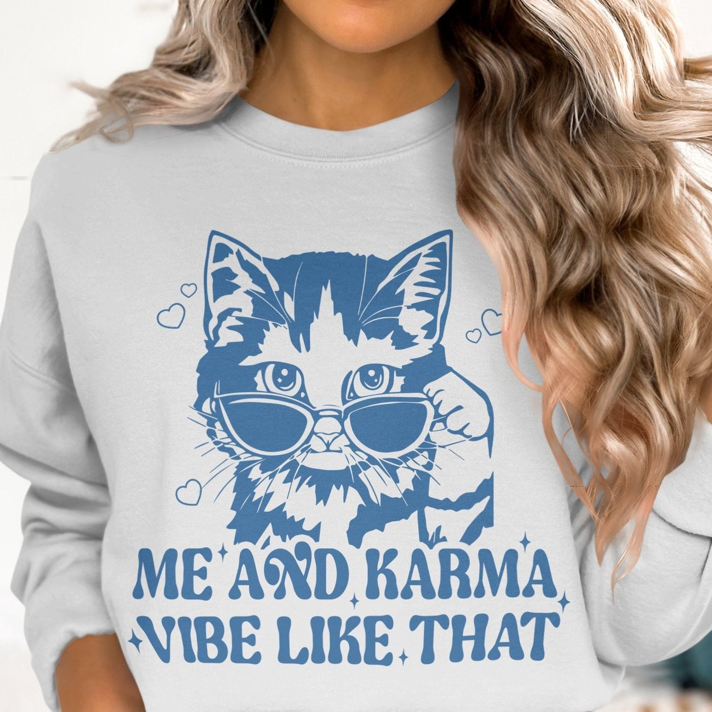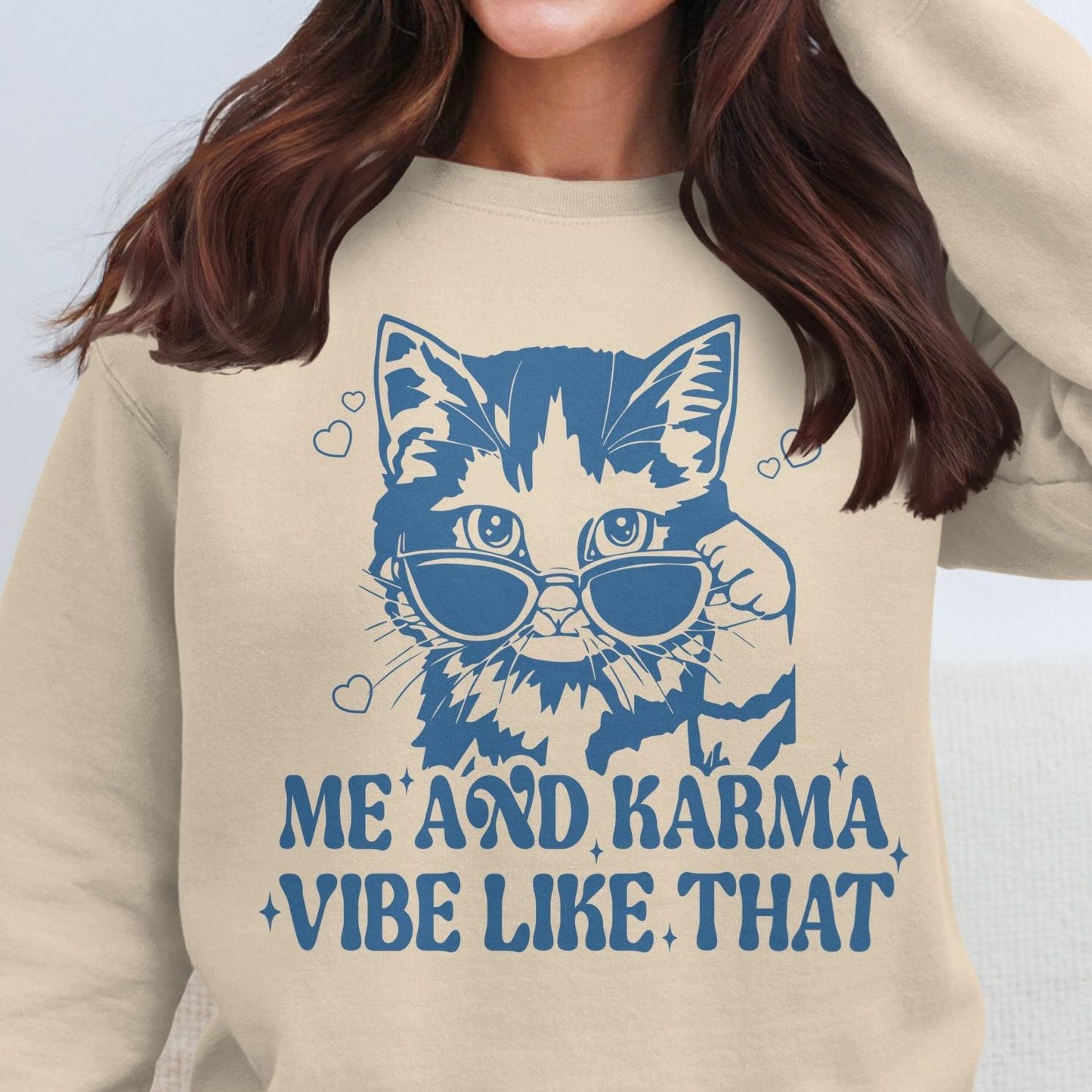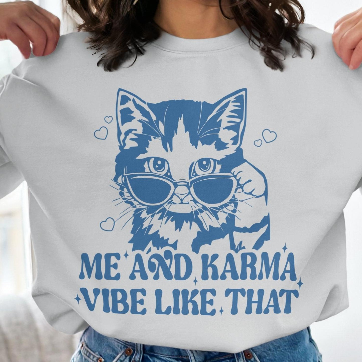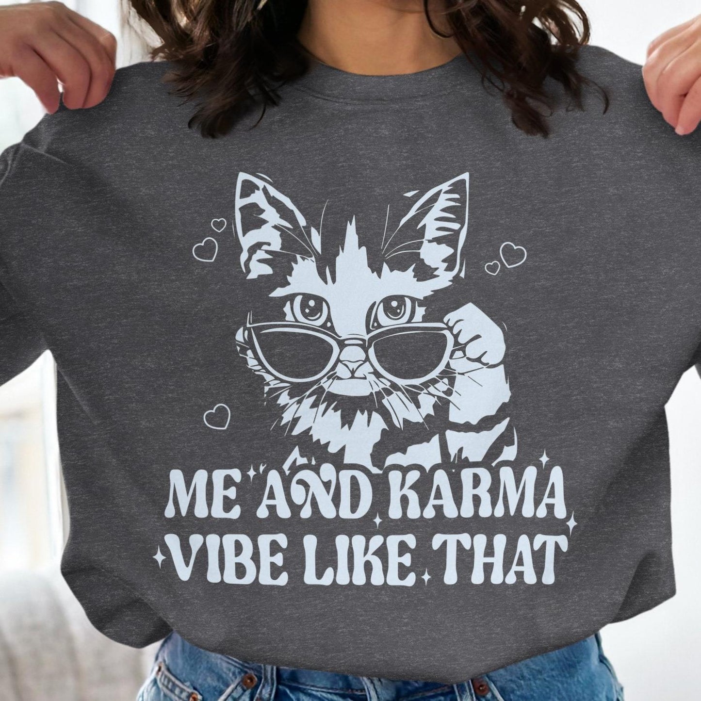 Me And Karma Vibe Like That - Cute Cat With Sunglasses Sweatshirt
