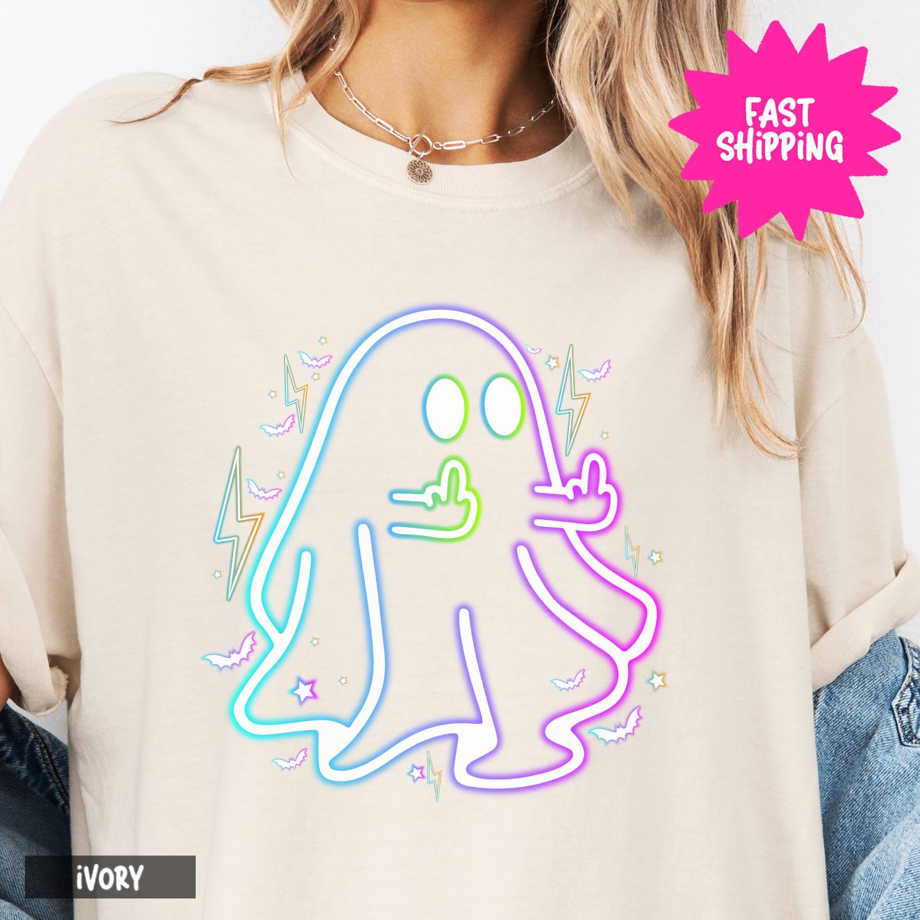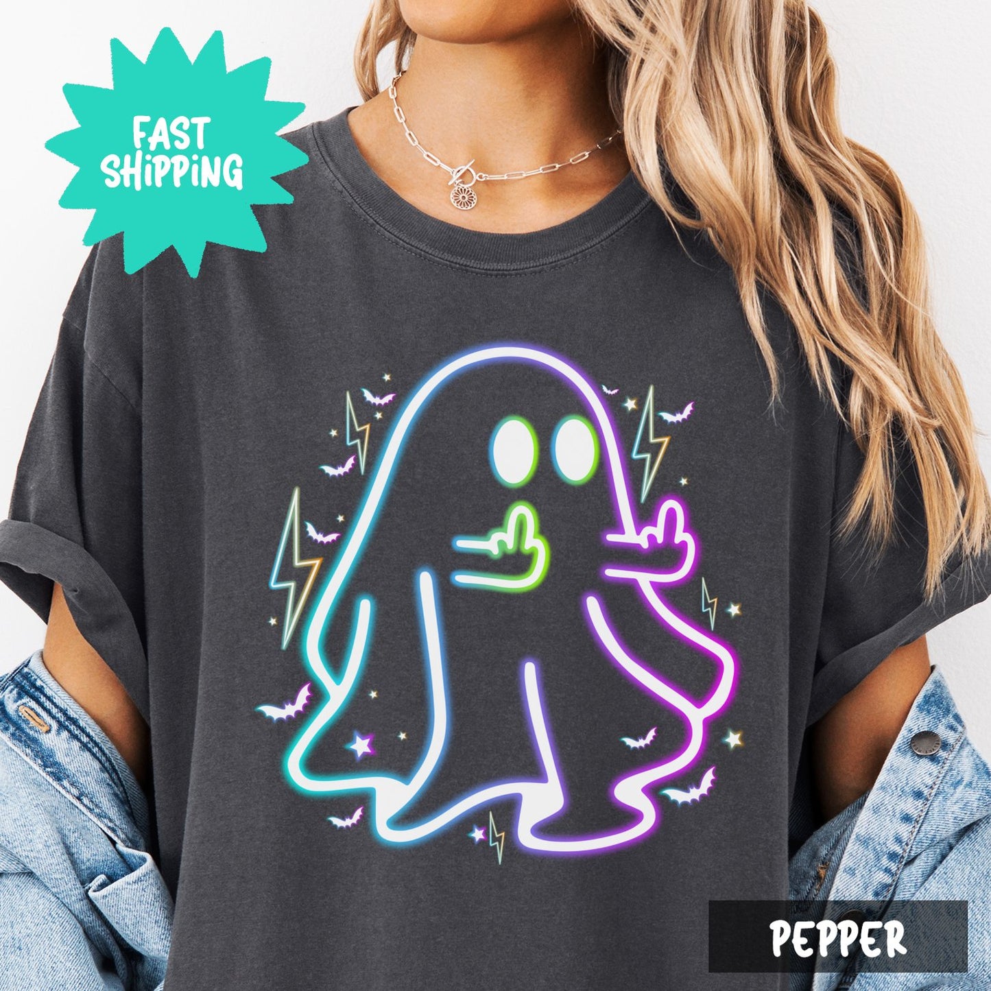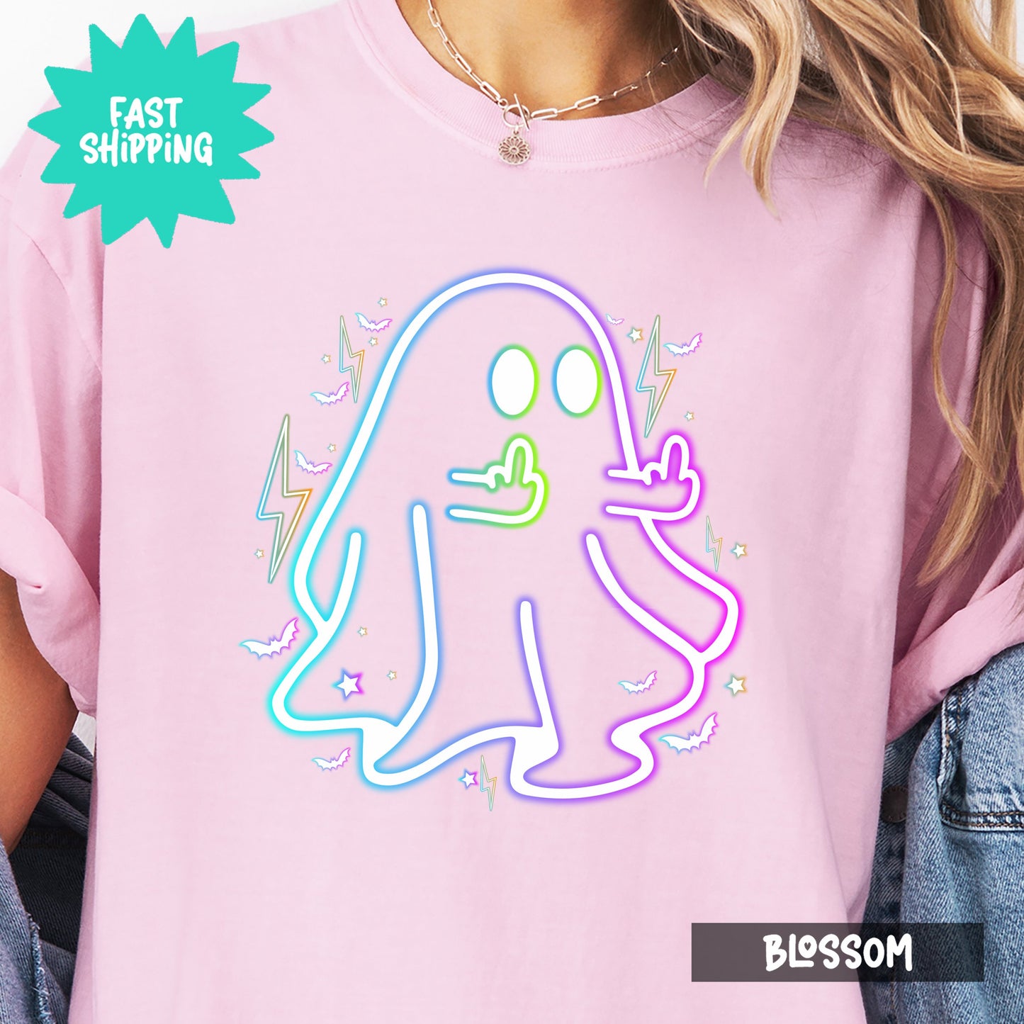 Neon Ghost Design Comfort Colors T-Shirt, Halloween Ghost Tee, Spooky Graphic Shirt, Unisex Casual Top