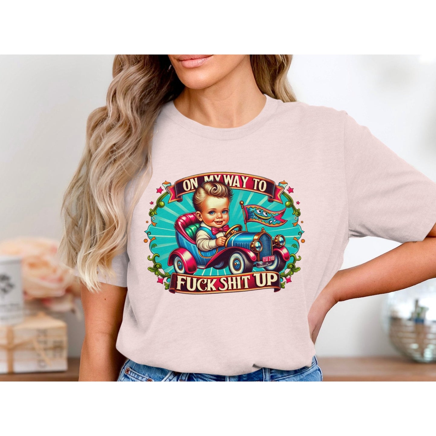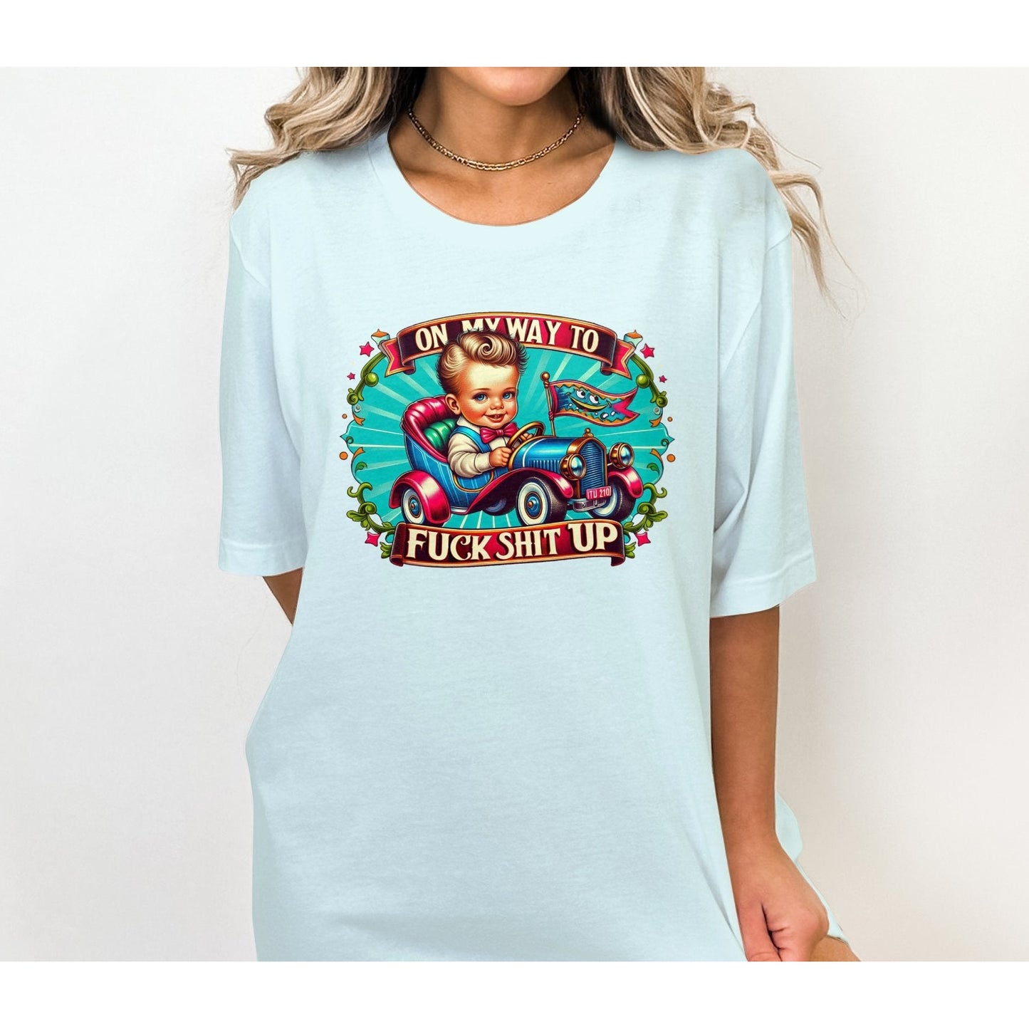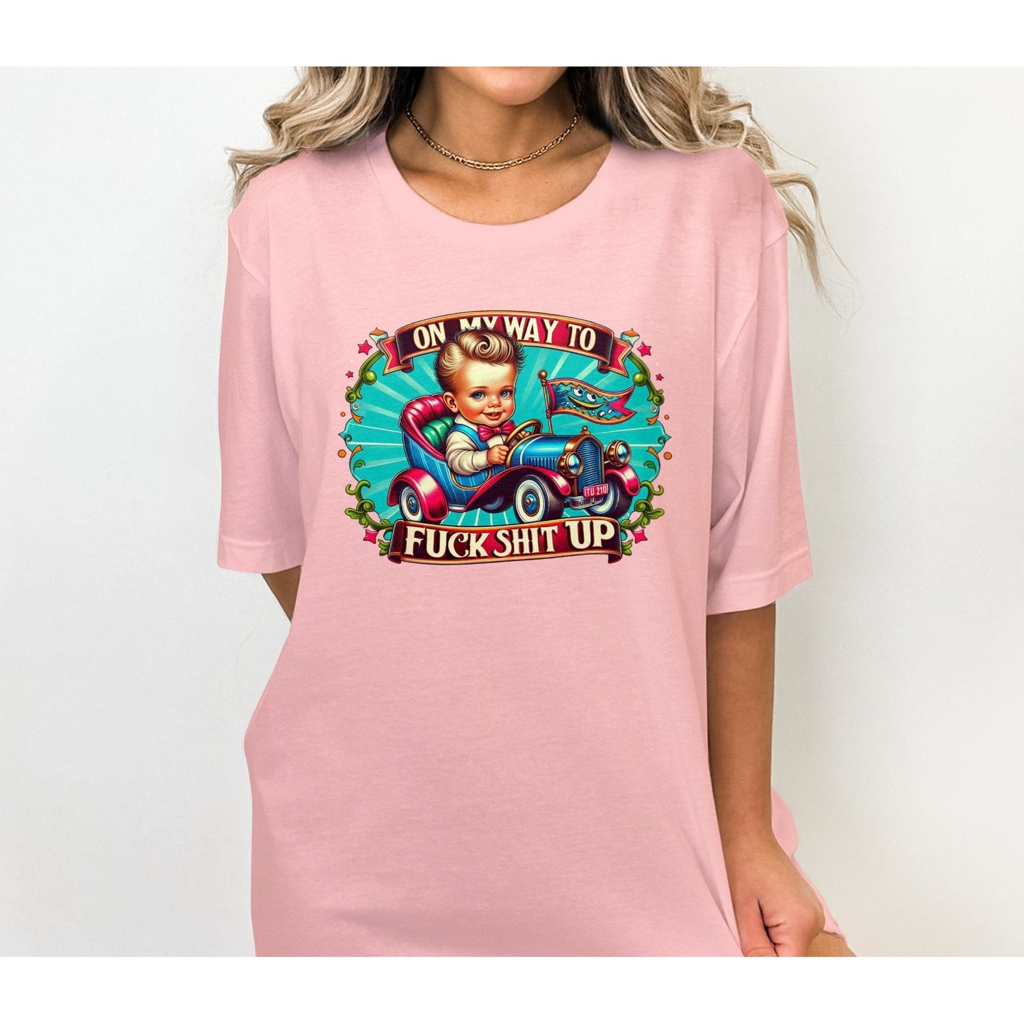 On My Way To F*ck Sh*t Up T-Shirt, Retro Car Graphic Tee, Fun Statement Shirt
