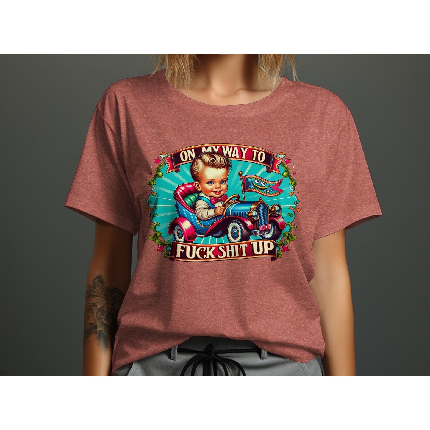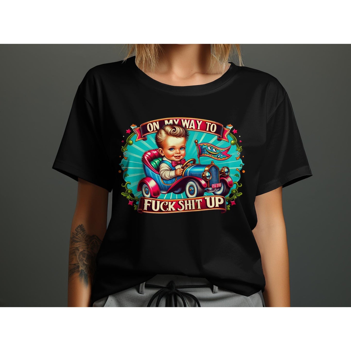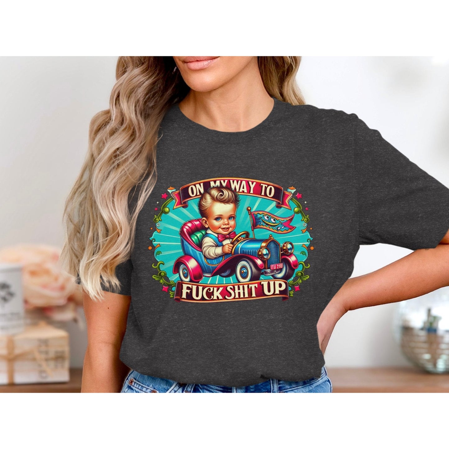 On My Way To F*ck Sh*t Up T-Shirt, Retro Car Graphic Tee, Fun Statement Shirt