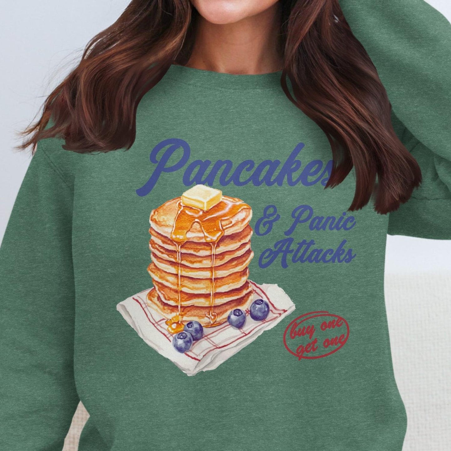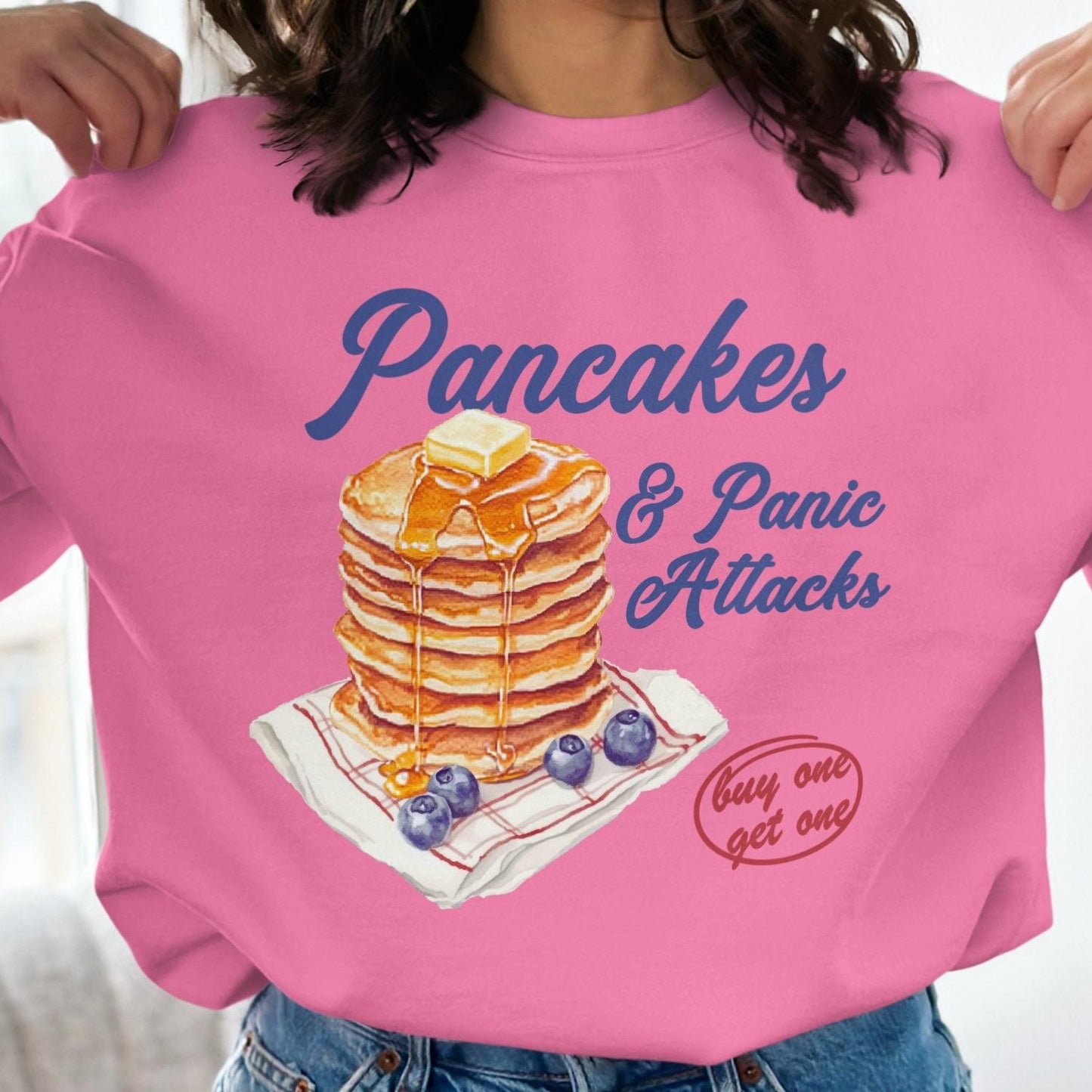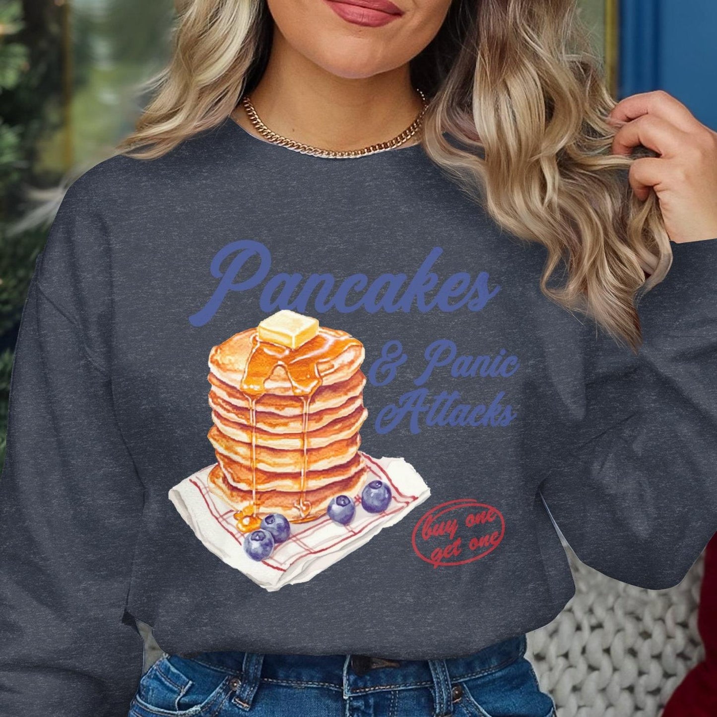 Pancakes and Panic Attacks Funny Sweatshirt, Humor Graphic Unisex Sweatshirt, Cozy Gift for Food Lovers