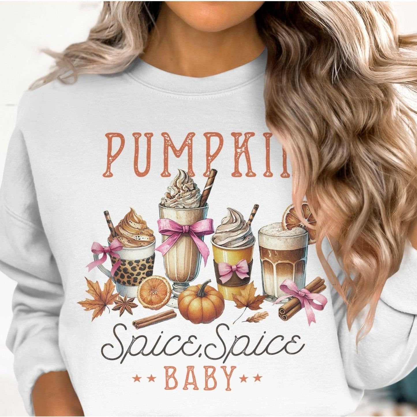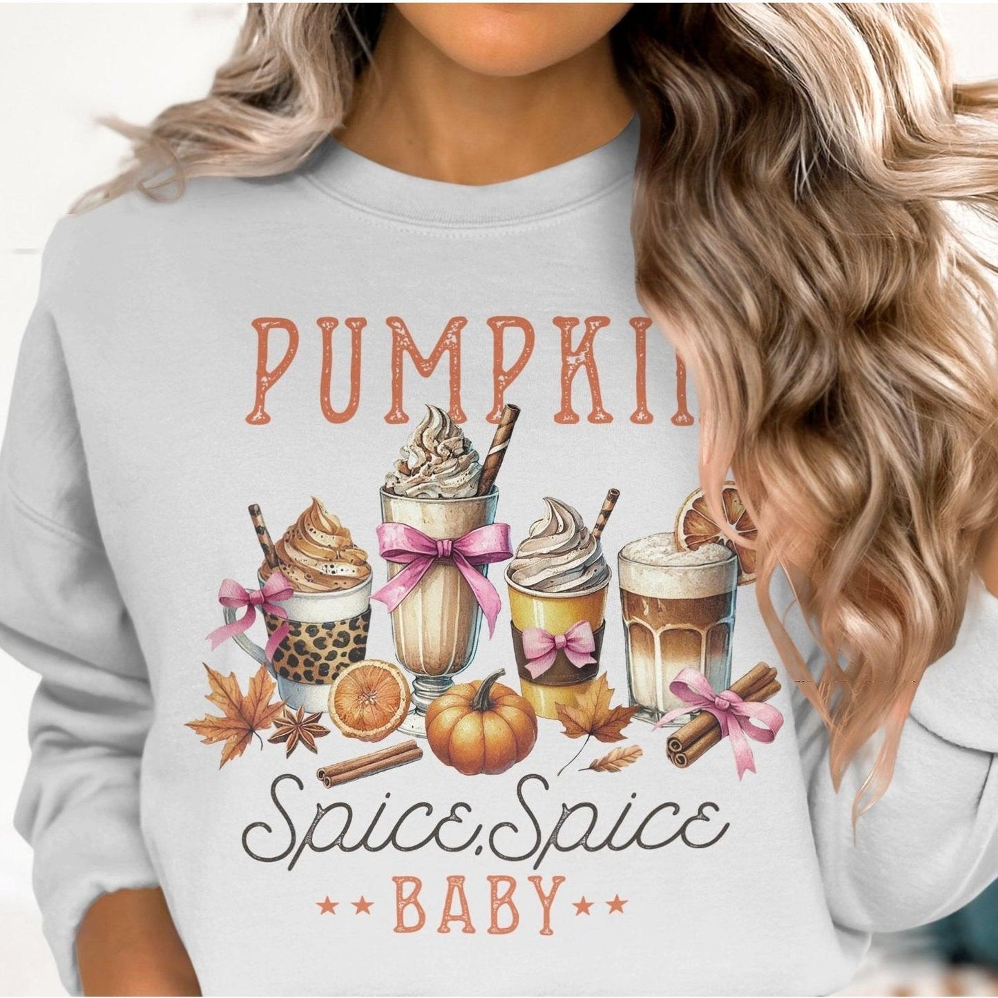 Pumpkin Spice, Spice, Spice Baby Sweatshirt, Cute Fall Coffee Designs, Sweatshirt