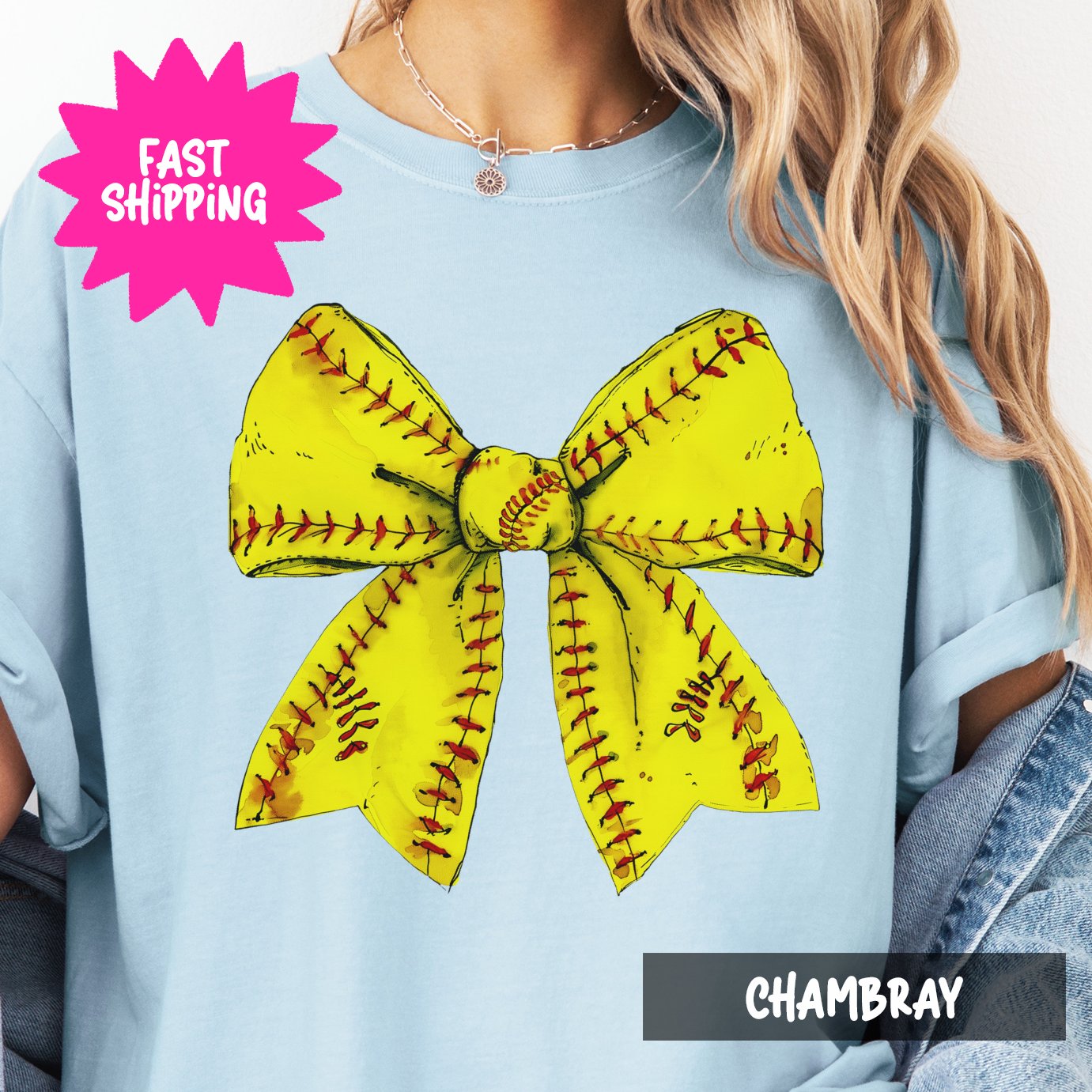 Softball Bow Comfort Colors T-Shirt , Perfect for Softball Lovers and Fans
