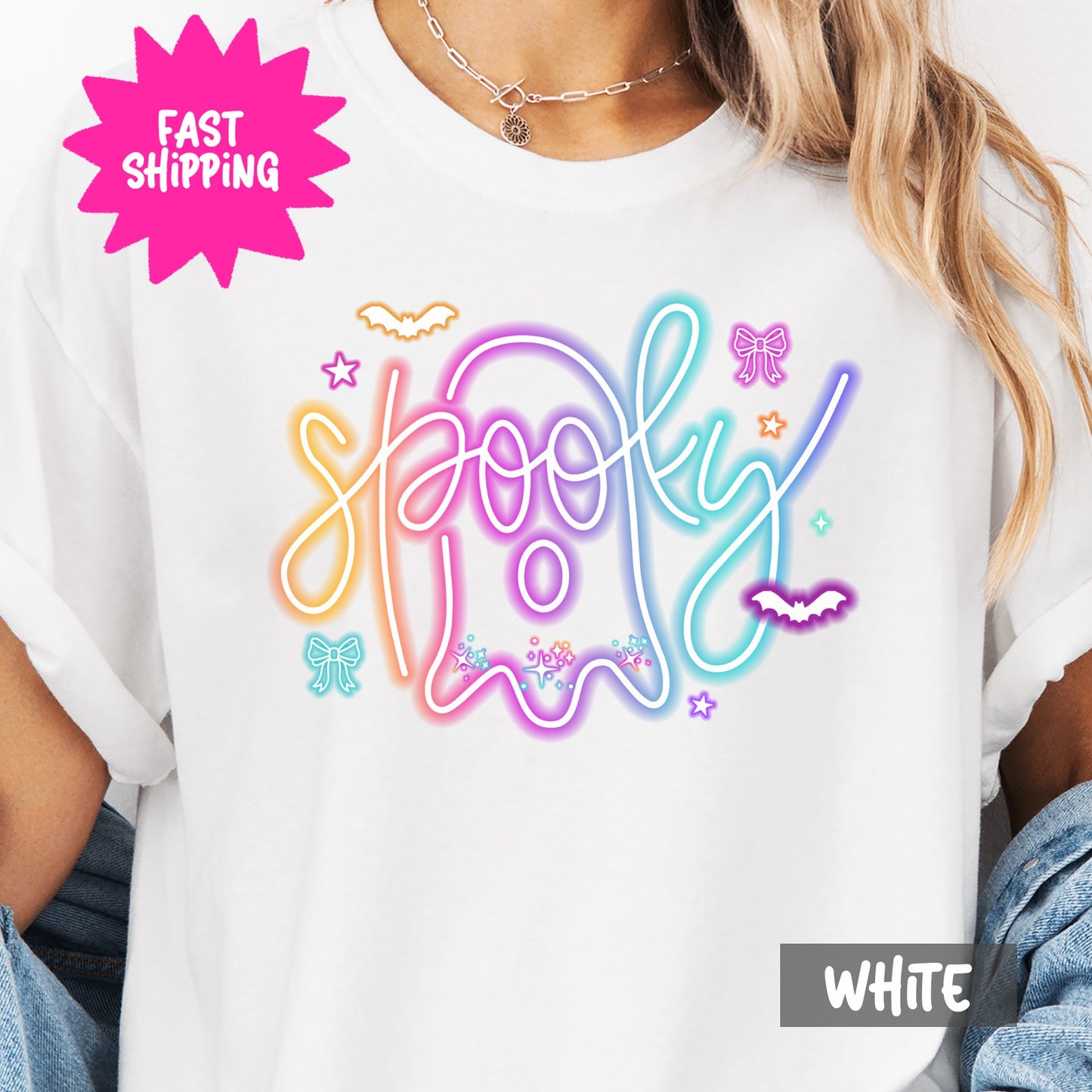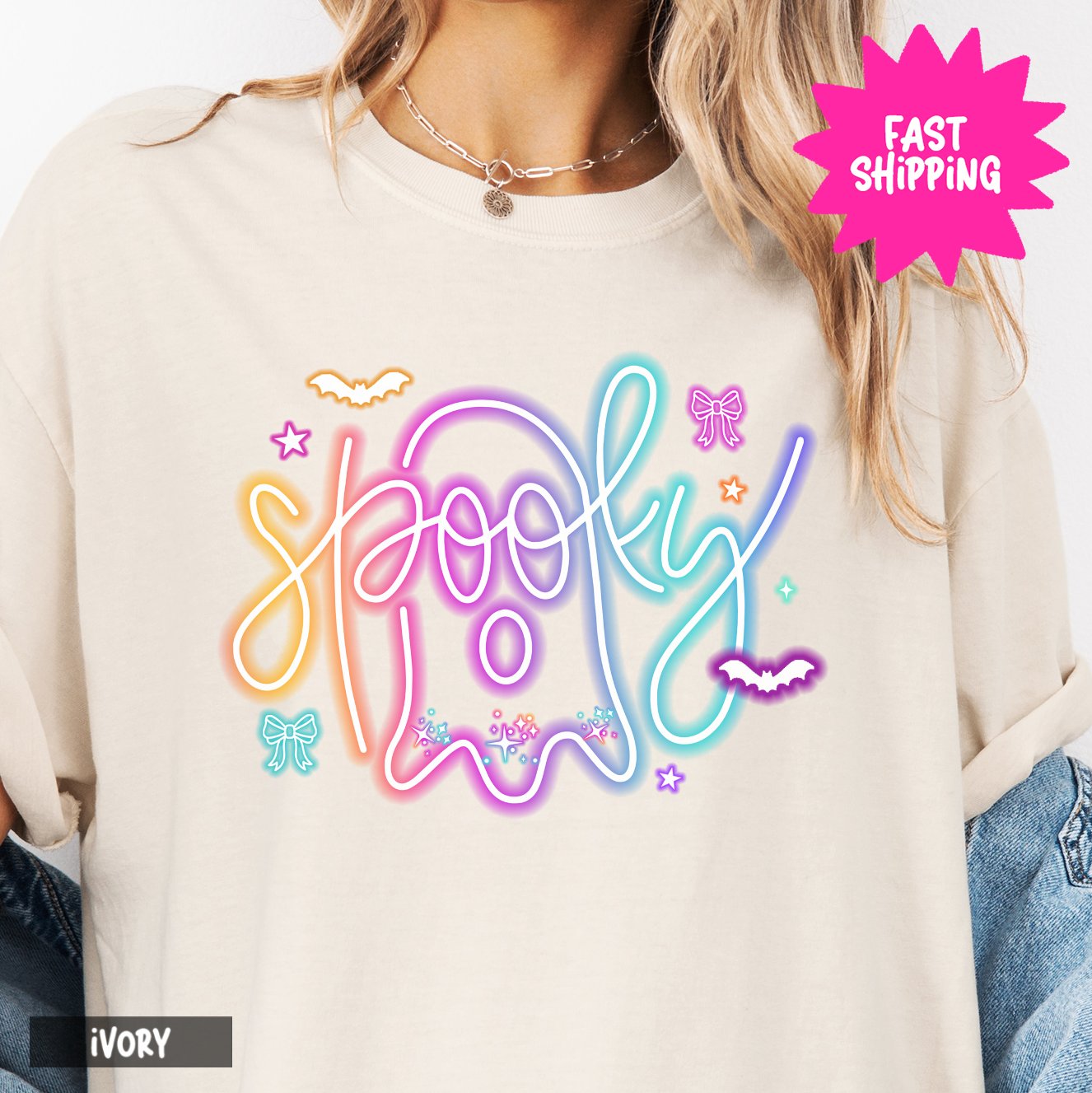 Spooky Ghost Comfort Colors T-Shirt, Halloween Graphic Tee, Cute Halloween Shirt, Neon Ghost T-Shirt, Colorful Spooky Shirt