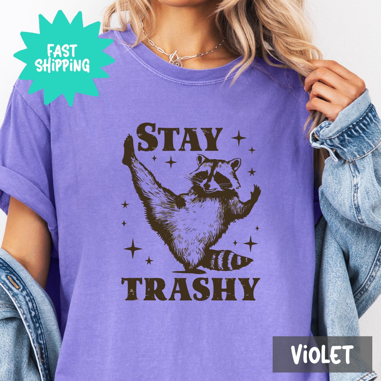 Stay Trashy Comfort Colors T-Shirt, Racoon Graphic Tee, Funny Animal Shirt, Unisex Comfort Colors Top