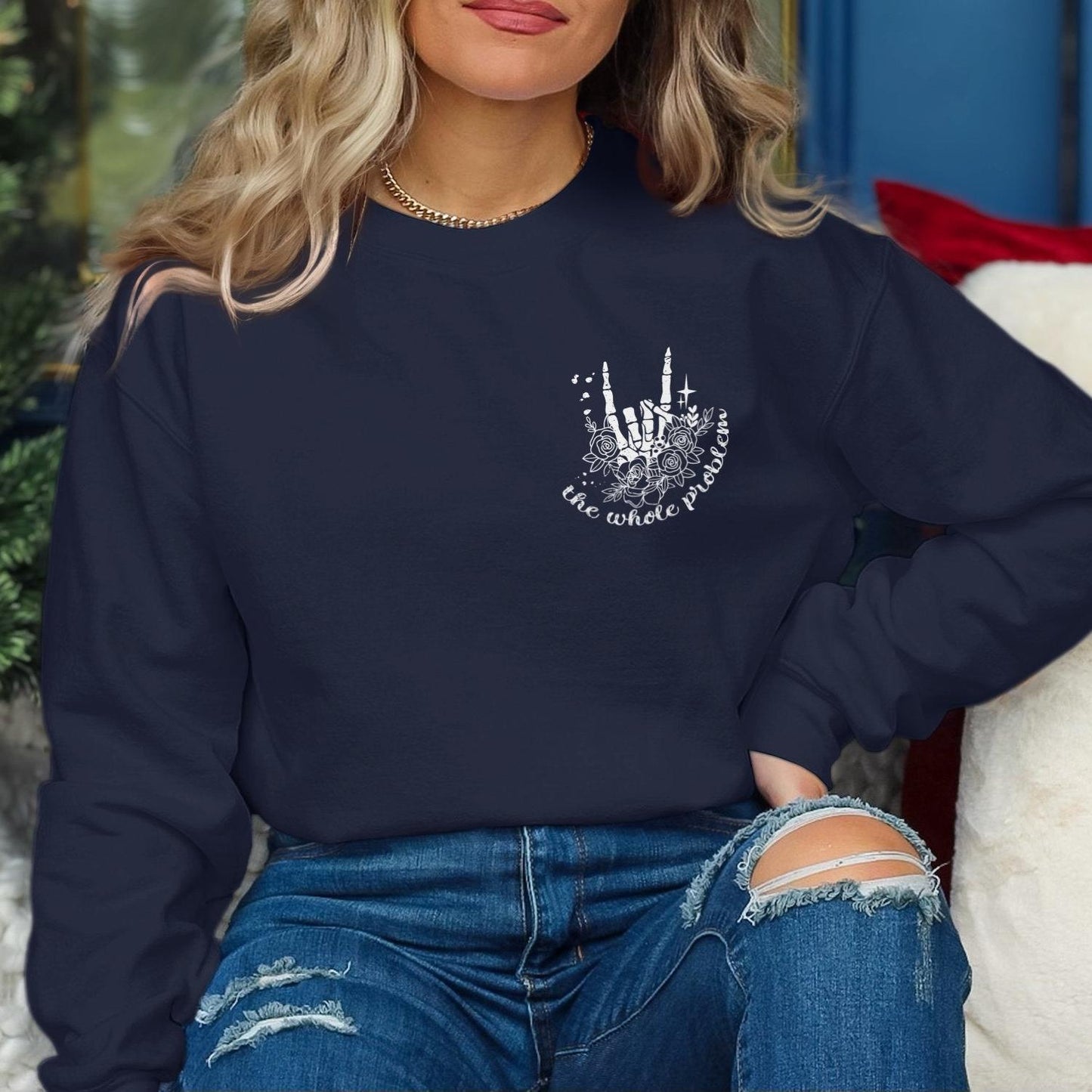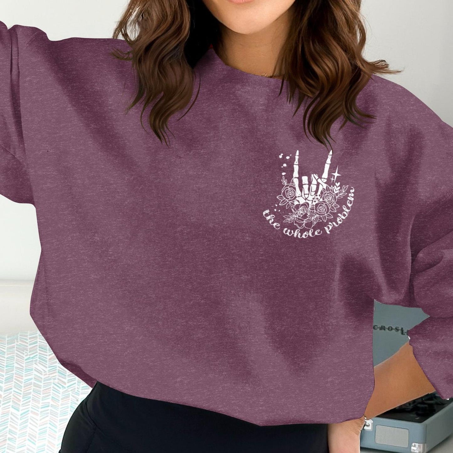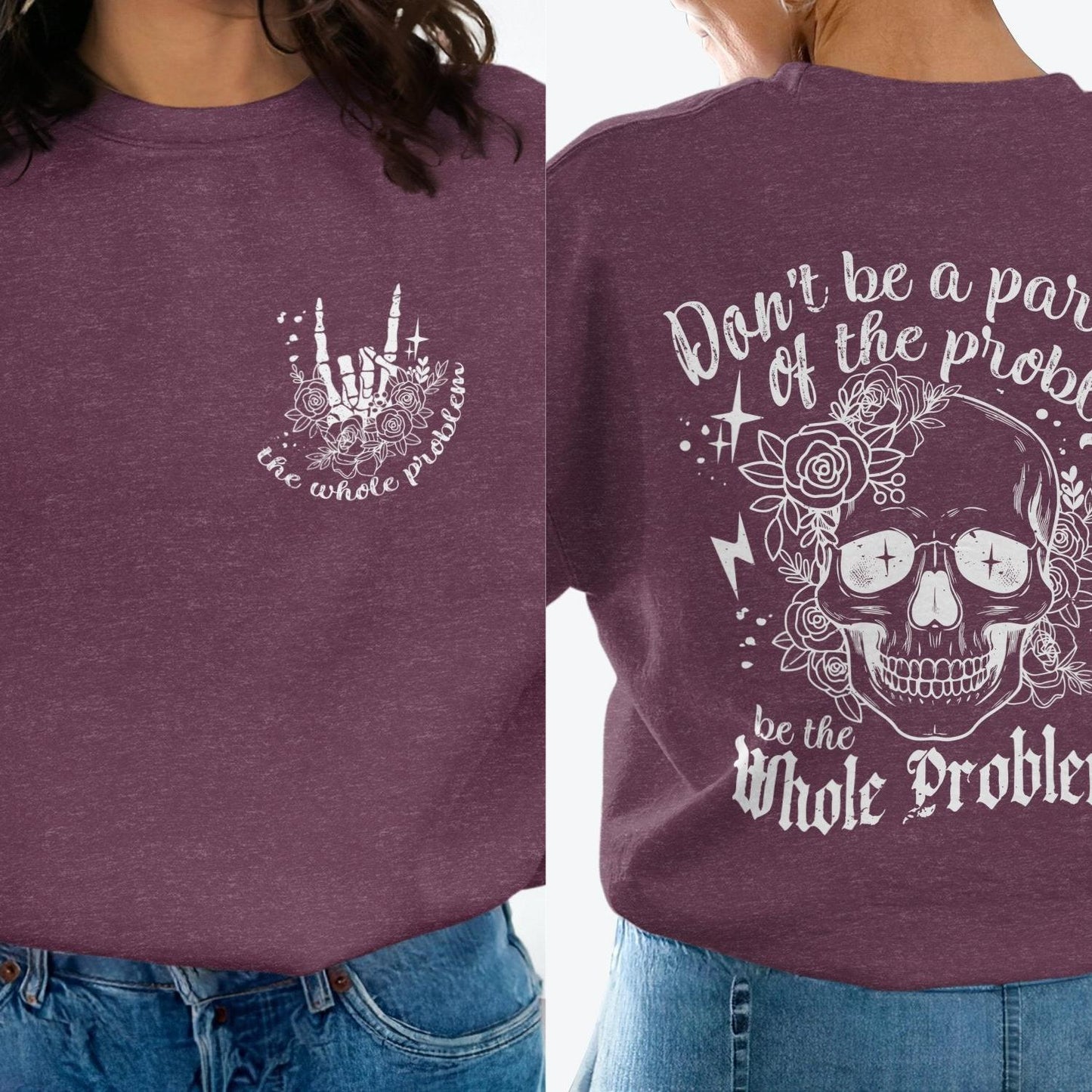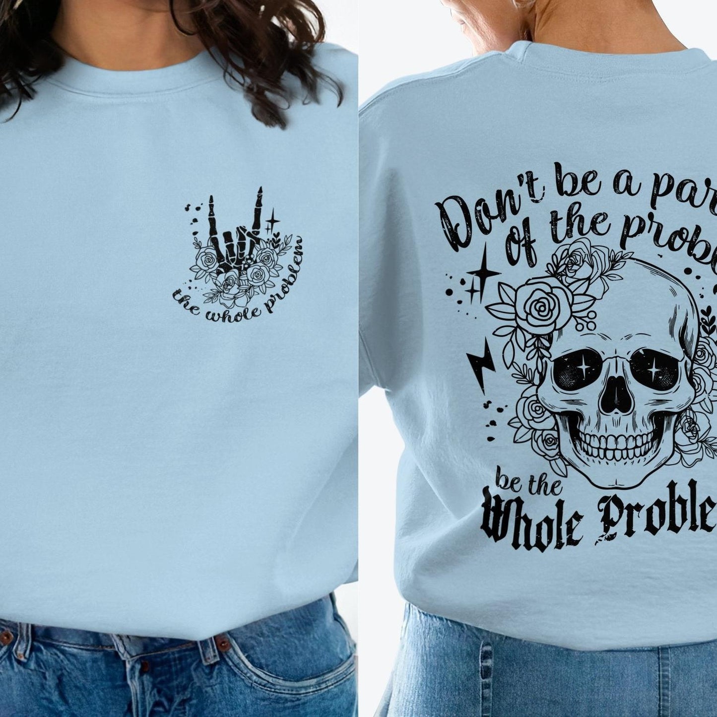 Don't Be Part of the Problem, Be the Whole Problem, Unique Skull Graphic Design Crewneck Sweatshirts